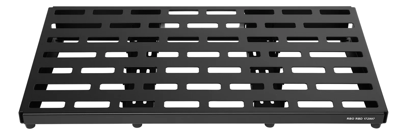 The RockBoard QUAD 4.2 is a rugged, professional-grade pedalboard designed for players needing space for 9 to 15 pedals (depending on size). Made from a single cold-rolled aluminium sheet with added vertical supports, it offers a lightweight yet rigid platform with no welds to compromise stability. Its smart slot system keeps cables neatly hidden beneath the surface and pairs seamlessly with RockBoard’s QuickMount system. A sturdy flight case protects your rig during transit, and there's room for most common power supplies underneath. It also includes a MOD slot for optional patchbays and mounting points for optional LED lights.