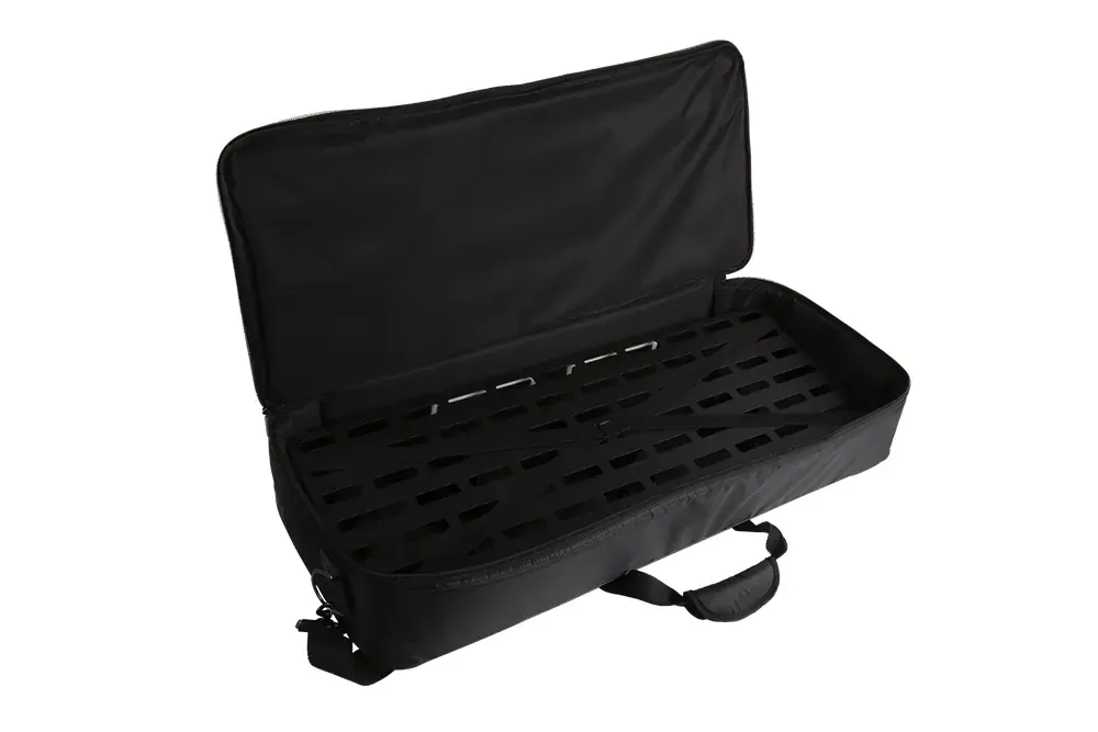 The RockBoard QUAD 4.3 Pedalboard with Gig Bag is a spacious and professional-grade board built to hold 10 to 20 pedals with ease. Crafted from a single sheet of cold-rolled aluminium with no welds, it offers a flat, torsion-resistant surface reinforced by vertical struts and U-shaped support braces. The slotted layout ensures clean, efficient cable routing and is fully compatible with RockBoard’s QuickMount system. Dual MOD slots allow integration of RockBoard patchbays, and the board supports most standard power supplies underneath. The included padded gig bag provides reliable protection for transport between rehearsals, gigs, and sessions.