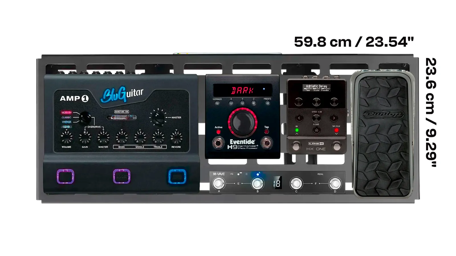 Please Note: Any pedals depicted above are for illustrative purposes and are not included. The above number of pedals listed as suitable for this board are an estimation only; this number will differ based on your specific set-up. Please refer to the board dimensions below, or use the RockBoard Board Configurator on the Rockboard website to ensure you select the most appropriate pedalboard.