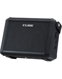 The Roland CUBE Street Mini is a compact, battery-powered combo amp designed as an all-in-one PA for solo performers, duos, and creators who need reliable sound anywhere. Its dual-channel layout supports flexible setups, with a main channel that handles guitar, microphone, or stereo instruments, and a dedicated mic channel with an XLR TRS combo input for dynamic microphones. The integrated 2.1 speaker system, combining a five inch speaker with twin tweeters, delivers clear, room-filling sound with wide dispersion that works well in cafés, intimate venues, and rehearsal spaces.