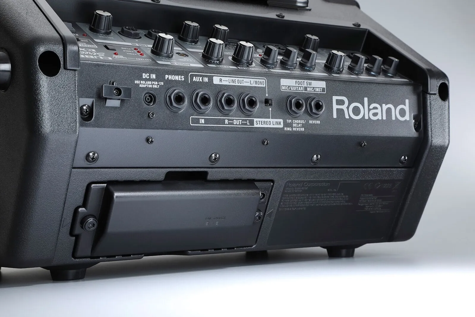 | Innovative Roland technology provides 50 watts of stereo power from eight AA-size batteries |