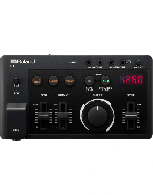 The Roland E-4 Voice Tweaker AIRA Compact is your ultimate vocal performance tool. It harmonizes, auto-pitches, vocodes, loops, and glitches your voice with hands-on controls. Advanced effects like Auto Pitch, harmony, and vocoder, combined with pitch and formant sliders, offer endless creative possibilities. The Scatter knob delivers unique rhythmic effects, while high-quality reverb, echo, and chorus effects enhance your sound. A 24-second looper with unlimited overdubbing and BPM detection lets you create complex vocal layers. With comprehensive connectivity options, including MIDI and USB-C, and a robust, battery-powered design, the E-4 is perfect for live performances and studio use.