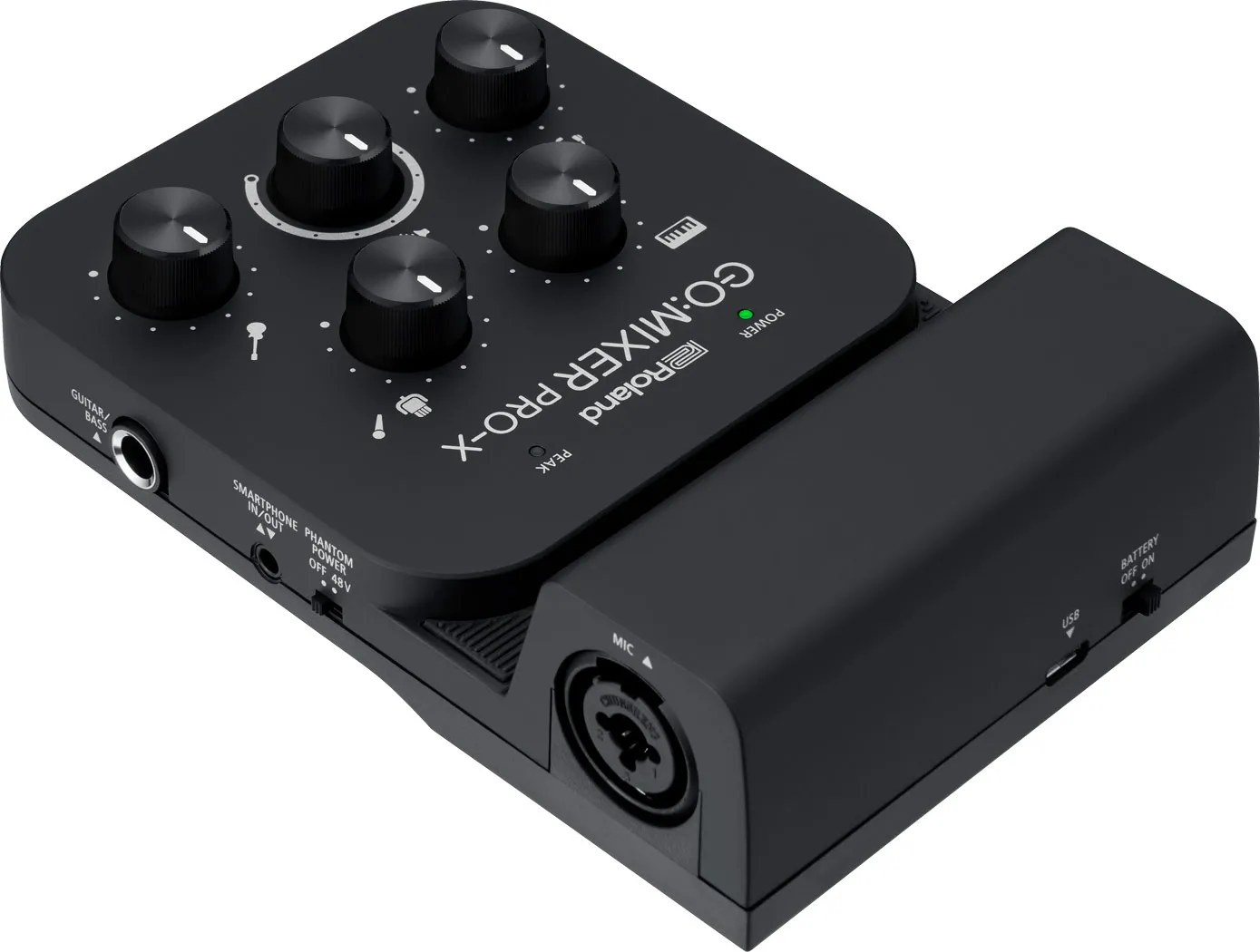 The Roland GO:MIXER PRO-X is designed for creators who rely on smartphones or tablets but need audio quality beyond built-in microphones. The compact mixer allows multiple sound sources to be connected and balanced at once, making it possible to capture vocals, instruments, and playback with clear separation and consistent levels. A dedicated mic input with phantom power supports studio microphones, while guitar or bass, instrument, and line-level inputs allow flexible setups for solo creators or small group performances.