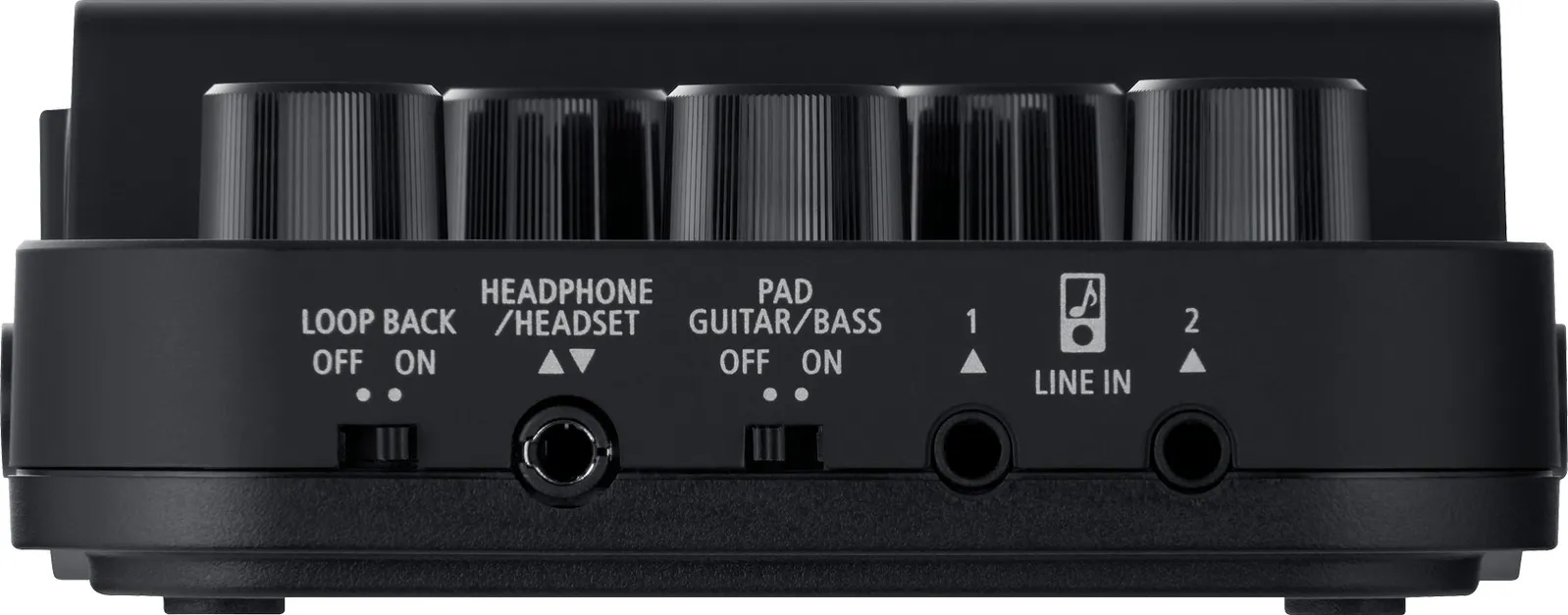 | Controller | INSTRUMENT knob, GUITAR/BASS knob, MIC knob, HEADSET MIC knob, HEADPHONE/SMARTPHONE OUT knob, LOOP BACK switch, PAD GUITAR/BASS switch, PHANTOM POWER switch, BATTERY switch |