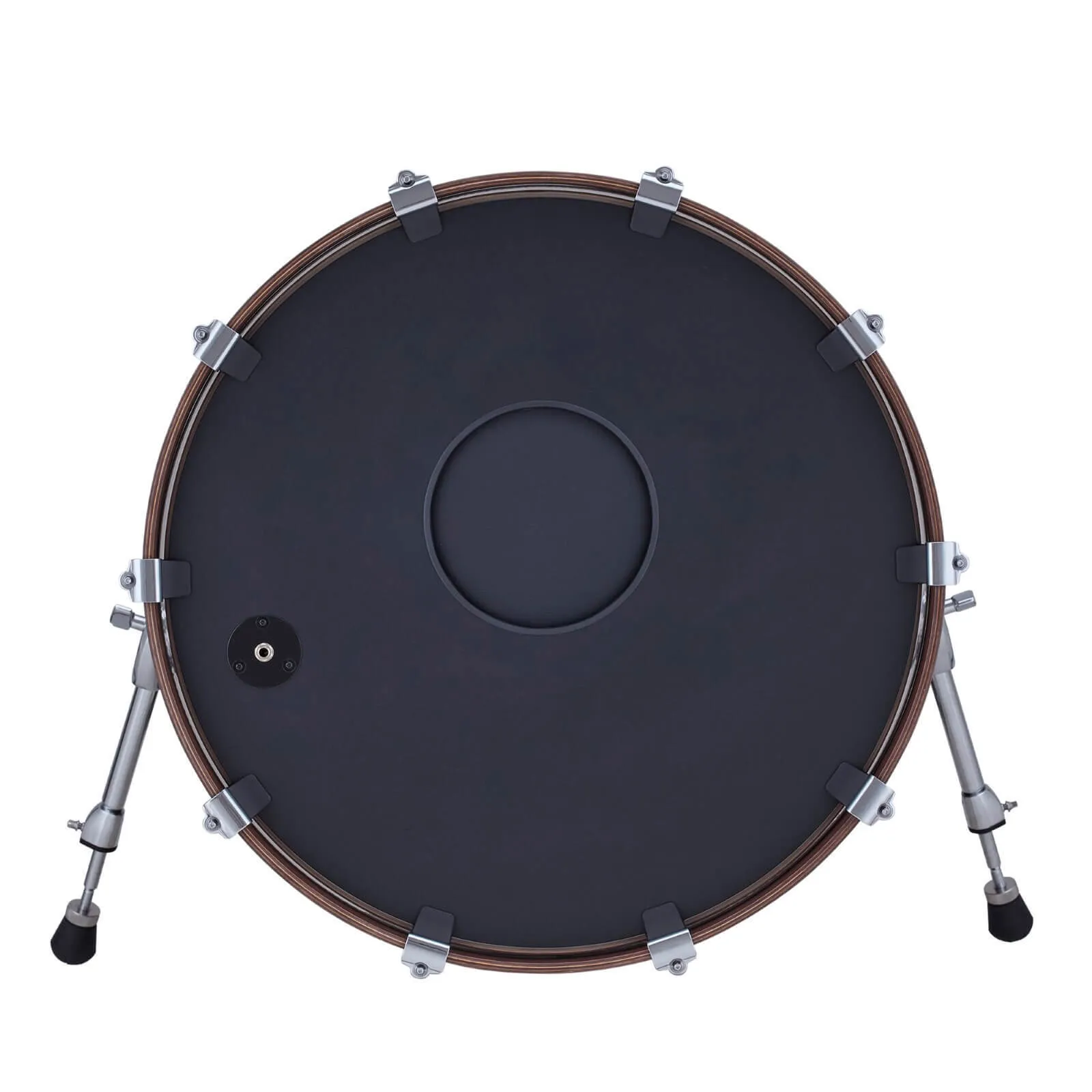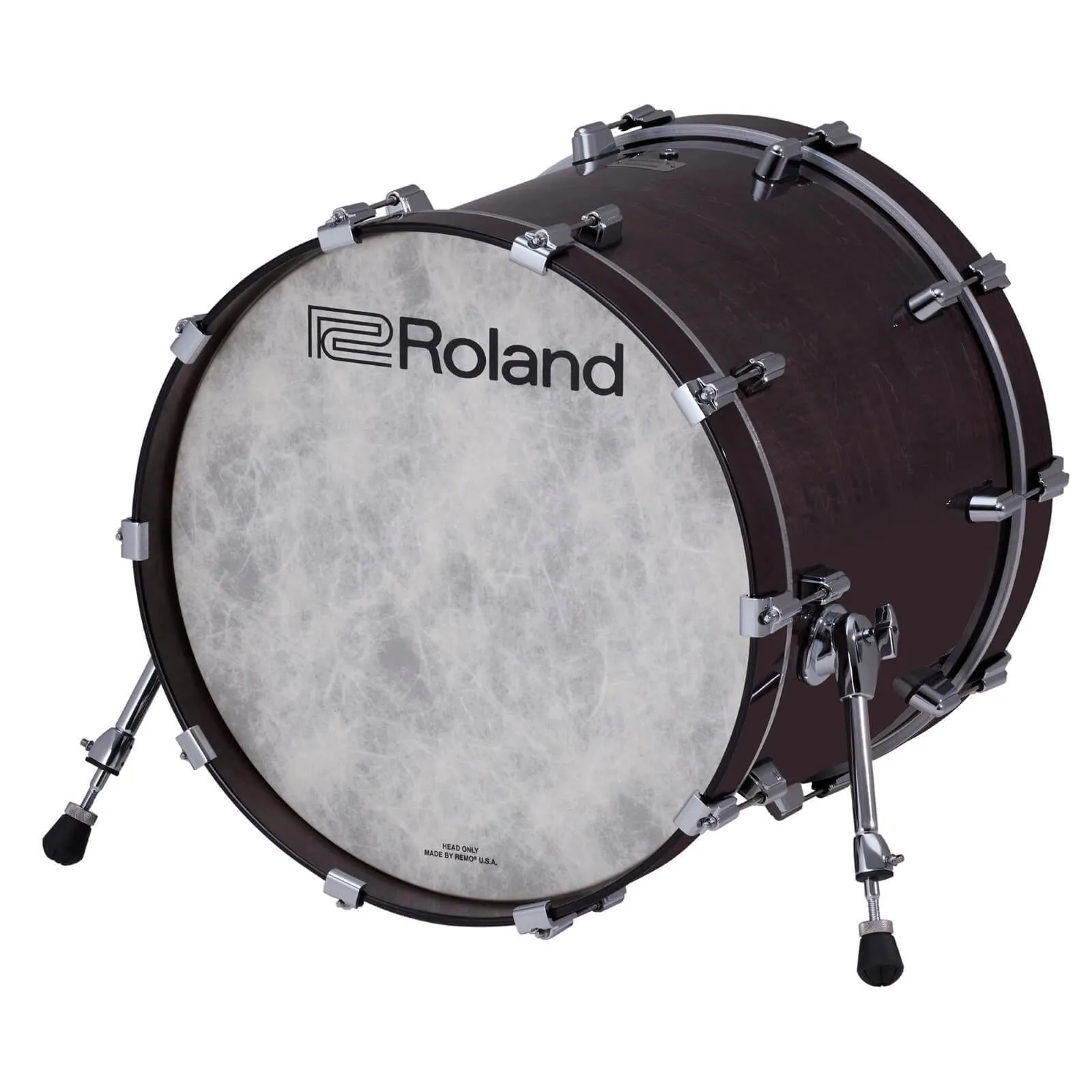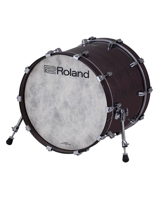 The Roland KD-22 is a premium 22-inch kick drum pad that delivers the feel of an acoustic kick drum with the advanced technology of V-Drums. Its full-depth wood shell and innovative head-mounted sensor system provide authentic rebound and response. Designed for durability, it features an enlarged trigger area for double pedals and adjustable legs for added stability. Custom chrome lugs and included KDP-5 self-adhesive patch make this pad ready for both studio and stage use.