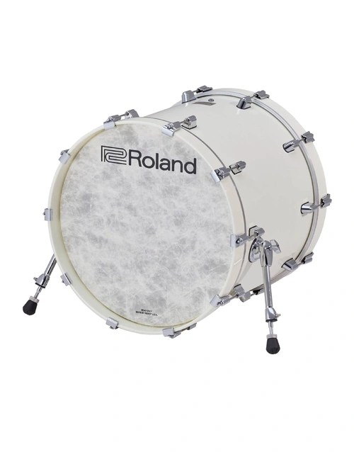 The Roland KD-22 is a premium 22-inch kick drum pad that delivers the feel of an acoustic kick drum with the advanced technology of V-Drums. Its full-depth wood shell and innovative head-mounted sensor system provide authentic rebound and response. Designed for durability, it features an enlarged trigger area for double pedals and adjustable legs for added stability. Custom chrome lugs and included KDP-5 self-adhesive patch make this pad ready for both studio and stage use.