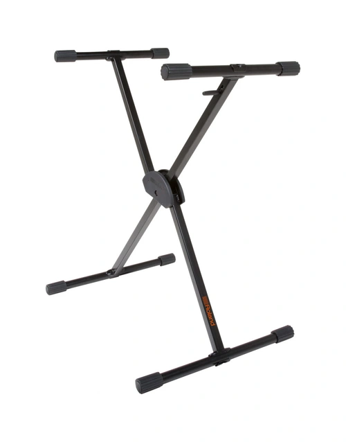 Ideal for all types of portable keyboards, the KS-10X stand delivers reliable performance at an affordable price. The offset-X design features a spring-loaded lever with locking clutch for quick and easy height adjustment, while adjustable rubber sleeves provide instrument support and solid stability on uneven surfaces.