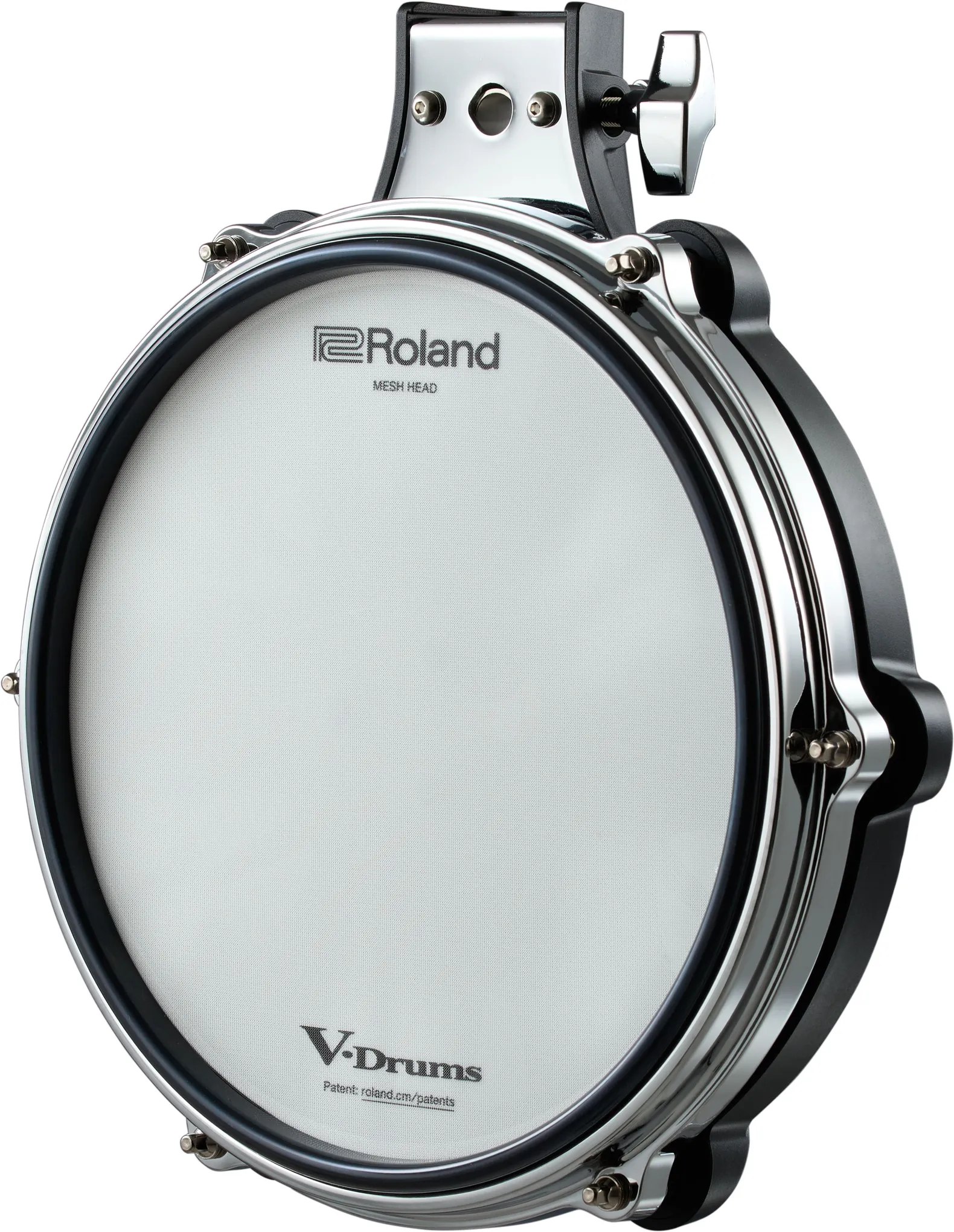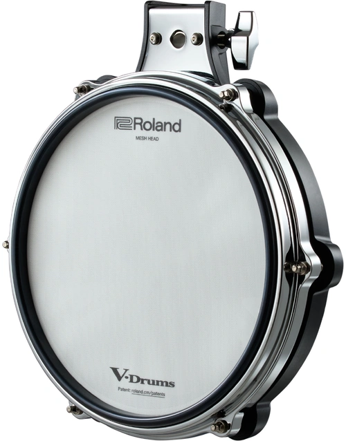 The Roland PD-10P is a next-generation 10-inch V-Pad that combines acoustic-style aesthetics with advanced electronic performance. Featuring chrome hoops, a durable rubber rim, and a tension-adjustable mesh head, it delivers natural stick feel and rebound. Triple piezo sensors ensure even response and eliminate hot spots, offering detailed dynamic control across the head and rim zones. Ideal as a snare or tom upgrade, the PD-10P brings enhanced realism and playability to any V-Drums or hybrid setup, all in a compact, road-ready design.