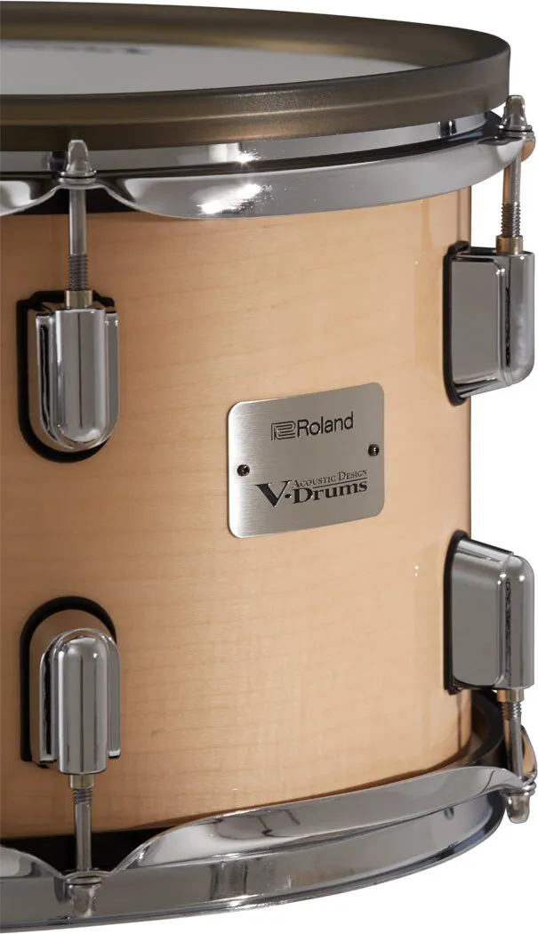 V-Drums Acoustic Design expands the V-Drums experience by blending the distinctive aesthetic of acoustic drums with Roland’s leading digital drum technology. Every component realizes the authentic crafted appearance of high-quality acoustic drums, with full-diameter wood shells and heavy-duty chrome hardware designed by Roland.