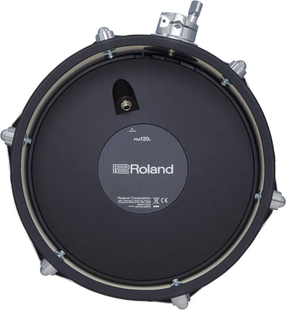 Crafted with a shallow-depth wood shell, the 12” PDA120L-BK tom pad delivers V-Drums Acoustic Design looks and playability in a compact size. Dual zones provide independent head and rim triggering, while the newly developed sensor system eliminates hot spots for accurate and even response across the entire playing surface of the head.