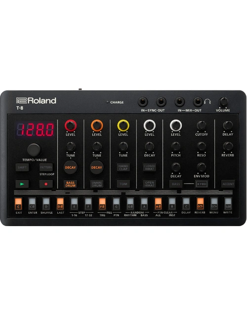The Roland T-8 Beat Machine AIRA Compact is an ultra-portable rhythm and bass machine loaded with legendary Roland TR drum sounds and TB-303 bass. Featuring six rhythm tracks from the iconic TR-808, TR-909, and TR-606 drum machines, along with a bass track with TB-303 waveforms, this machine lets you craft infectious tracks on the fly. The classic TR-REC sequencer, advanced programming features, and high-quality effects such as delay, reverb, and overdrive make it easy to create dynamic performances. With comprehensive connectivity, including USB-C and MIDI, and a long-lasting lithium-ion battery, the T-8 is perfect for on-the-go music production.