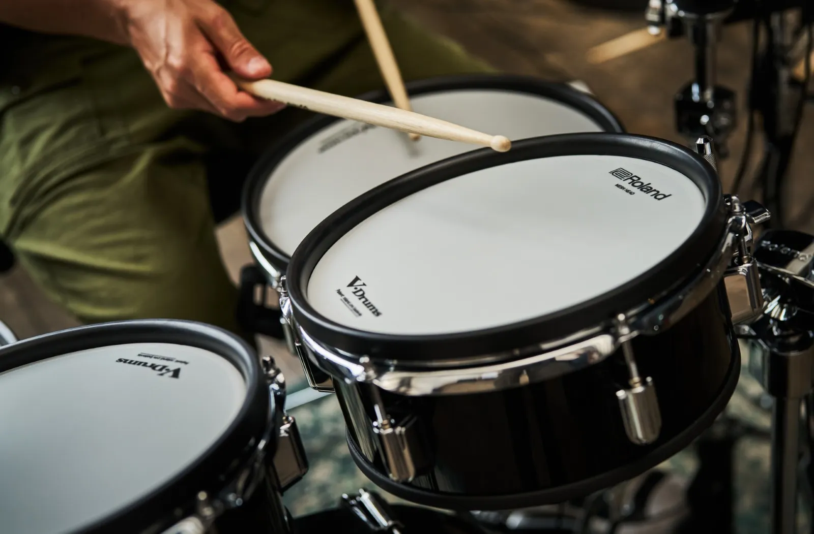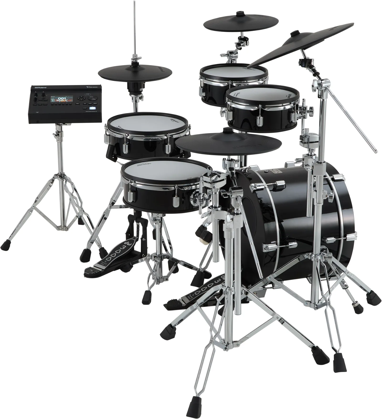 | Kit Configuration | Drum Sound Module: V31 × 1 Snare: PDA120LS × 1 Tom 1: PDA100L × 1 Tom 2: PDA100L × 1 Floor Tom: PDA120L × 1 Hi-hat: VH-10 × 1 Crash 1: CY-12C-T × 1 Crash 2: CY-14R-T × 1 Ride: CY-16R-T × 1 Kick: KD-18-BK × 1 Module Stand: PDS-5 × 1 Drum Combination Stand: DCS-30 × 3 *1 Kick Pedal: Not Included Snare Stand: Not Included Hi-Hat Stand: Not Included Drum Throne: Not Included SD Card: Not Included |