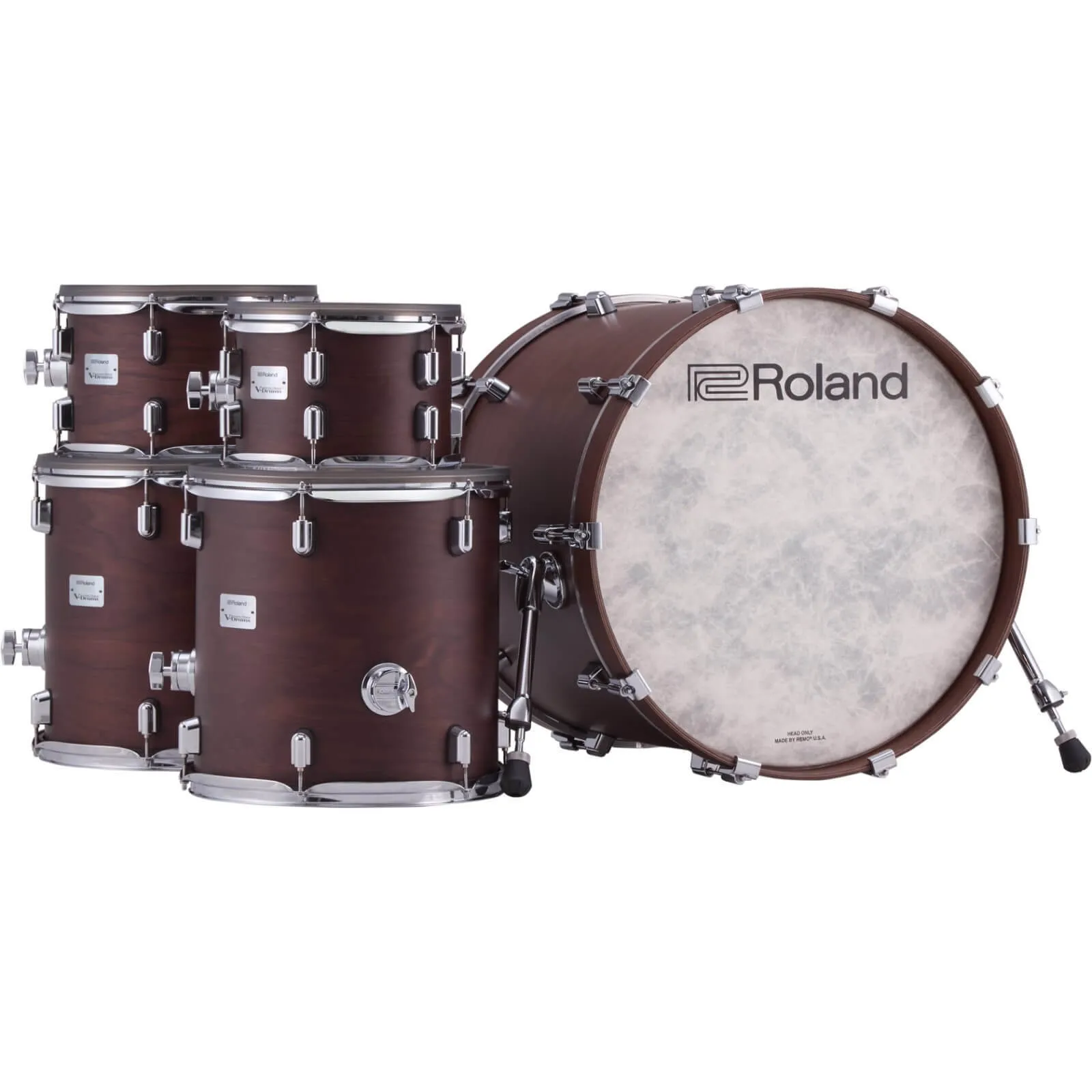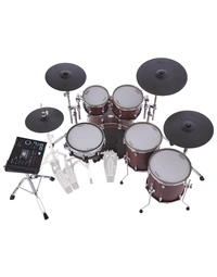 The Roland VAD-716 takes electronic drumming to new heights, blending the cutting-edge features of the V-Drums 7 Series with the aesthetic and feel of acoustic drums. This six-piece kit features full-size wood shells in premium finishes, including Satin Walnut, with a reimagined V71 module that offers deep sound customisation. The PD-14DSX digital snare provides detailed triggering, while the KD-22 kick delivers authentic acoustic response. The kit also includes two rack toms, two floor toms, and a digital ride and hi-hat for enhanced playability.
