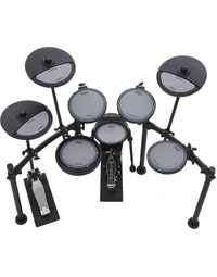 The Roland VQD-106PADS V-Drums Quiet Design kit is the quietest drum kit in the world, perfect for home use. Thanks to advanced engineering, this kit reduces noise by up to 75% compared to standard electronic drums, without sacrificing the realistic feel and responsiveness. Featuring ultra-quiet snare, toms, and cymbals with honeycomb rubber and mesh construction, it minimises sound while maintaining natural stick feel. The innovative kick pad and quiet beater also ensure minimal noise transmission. The VQD106PADS kit is the same as the VQD106 model without the TD-07 module and connection cables, allowing you to add the compatible V-Drums module of your choice.