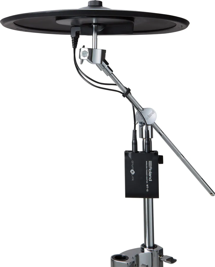 The Roland WT-10 Wireless Trigger Adapter makes converting your wired drum pads to wireless fast and simple. Designed to work with the DH-10 DrumLink Hub, the WT-10 offers ultra-low latency and rock-solid reliability for both V-Drums and other Roland-compatible drumming gear. It supports up to two single- or dual-trigger pads, including cymbals, hi-hats, and the BT-1 Bar Trigger. Built with an integrated mount for secure attachment, the WT-10 is an ideal solution for cleaner setups, quicker changeovers, and flexible pad arrangements—even when integrating with Drum Workshop’s DWe hybrid kits.