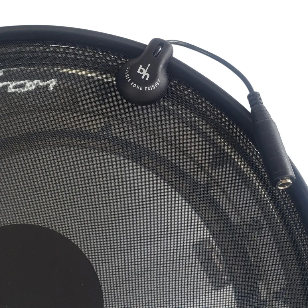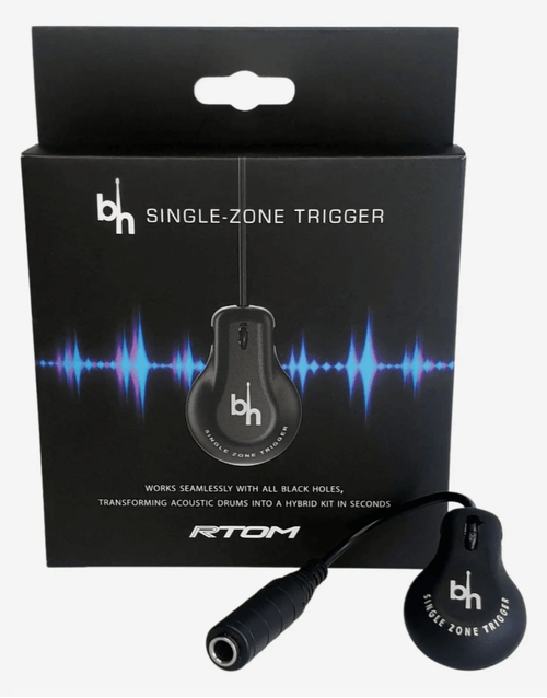 Single-Zone Triggers instantly transform acoustic drum heads outfitted with RTOM Black Hole Practice Pads into a hybrid kit. With bh Triggers, the days of requiring mesh heads, tools, and time to transform your acoustic heads into an electronic kit have come to an end. Now, simply snap on and snap off Black Holes equipped with bh Triggers to your acoustic heads and, in seconds, drummers effortlessly transition between acoustic and hybrid playing.