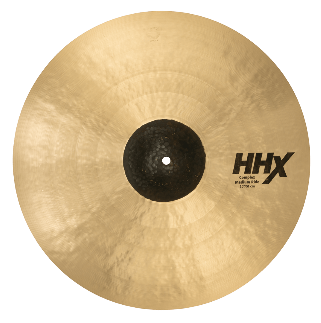 The Sabian 12012XCN HHX 20" Complex Medium Ride Cymbal features B20 composition, a raw hammered bell, a combination HH/HHX hammering technique, and the same manufacturing techniques developed from years of producing some of the most popular cymbals in the world, such as the Evolution, Legacy and Artisan series. The result is a super rich, super sweet ride. This ride is big, thin, and dark, which when combined with a medium-sized hand-hammered raw bell, gives you a cymbal with pronounced lows and subtle complexity. Just like the rest of the HHX line, the Sabian 12012XCN HHX 20" Complex Medium Ride Cymbal is extremely versatile, and can easily cross musical styles.