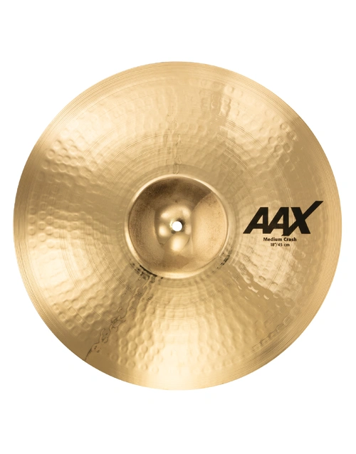 The 18" AAX Medium Crash from SABIAN introduces a whole new palette of sound to the AAX line. The larger raw bell adds more meat for more projection. A whole new style of hammering - much more visible on the surface of the cymbal due to the larger, rounder peen - makes for a more complex and slightly darker crash. At the same time, more highs are introduced into the sound, resulting in a wider band of frequency. For drummers, that means brighter highs and more complex lows.