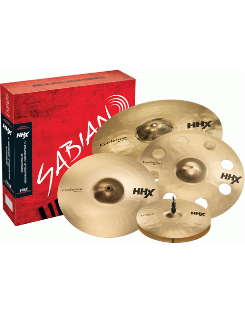 Sabian Packs are a great way to pick up an excellent set of cymbals, at an affordable price. The Sabian HHX15005XEBP HHX Evo Promotional Set includes 14" HHX Evolution Hats, 16" HHX Evolution Crash, 20" HHX Evolution Ride, and a bonus 18" HHX Evolution O-Zone Crash.