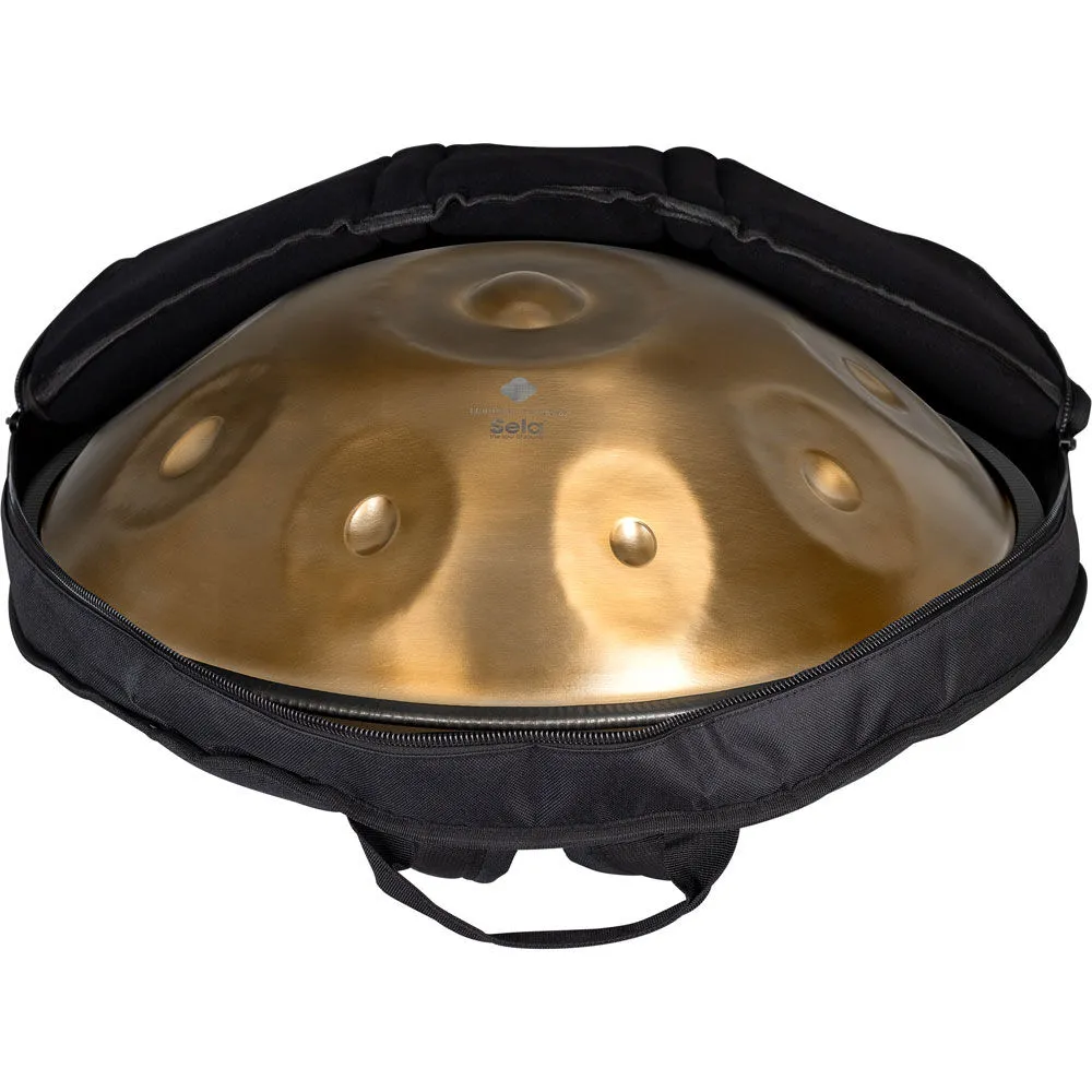 The Sela SE201 Harmony Handmade Stainless Steel Handpan in Gold (D Kurd 9) is a beautifully crafted instrument that blends percussion and melody into a meditative soundscape. Handmade from stainless steel, it offers a long sustain and sensitive response, making it ideal for beginners and experienced players alike. The D Kurd tuning (D3, A3, Bb3, C4, D4, E4, F4, G4, A4) provides a versatile palette, from soothing and reflective to uplifting and energetic. Its matt gold finish adds a refined aesthetic, while the stainless steel construction ensures durability and easy maintenance. Measuring 57cm in diameter and weighing 5.2kg, it is comfortable to play and transport. Each handpan comes with a padded, tear-resistant nylon gig bag featuring handles, backpack straps, and an accessory pocket. At Riffs & Licks Music, we think this Sela handpan is a perfect choice for anyone seeking an inspiring, calming instrument with premium craftsmanship and tone.