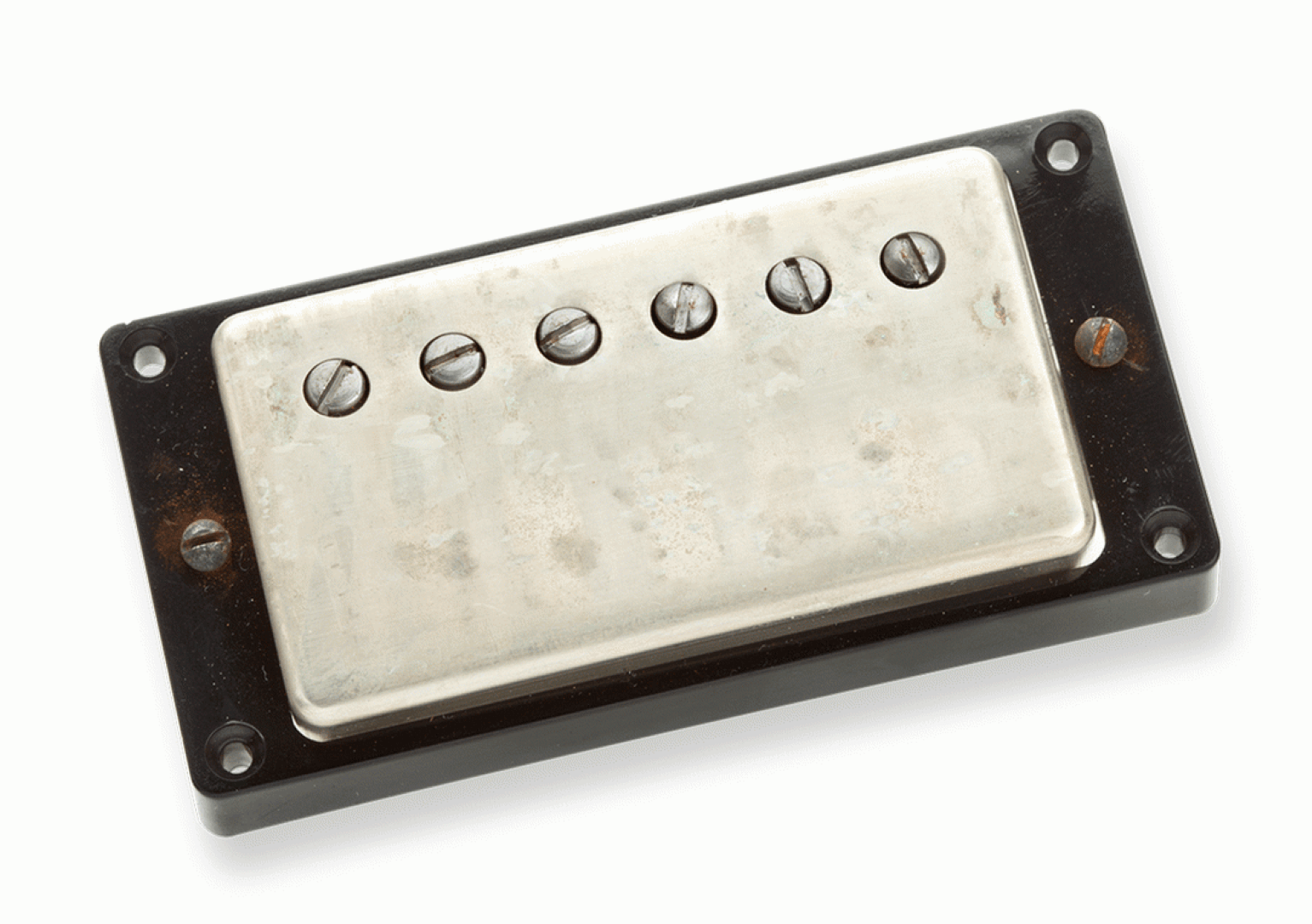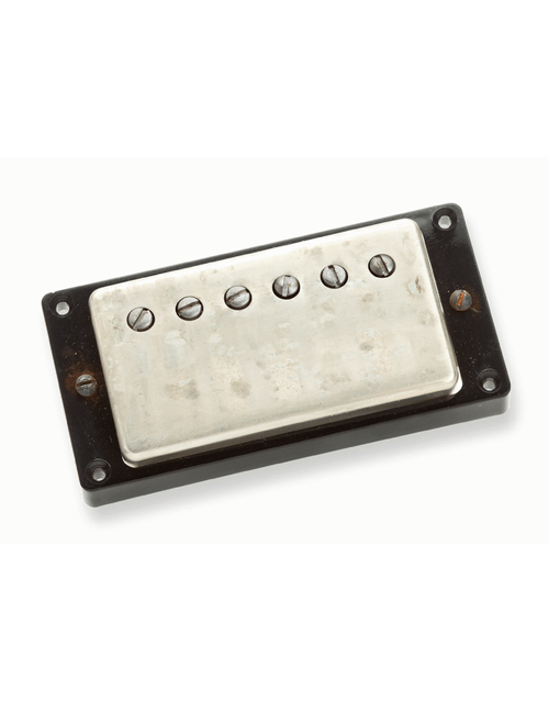 Each Antiquity humbucker is built in Seymour Duncan's Custom Shop and aged both cosmetically and magnetically to simulate the wear and tear that a pickup goes through after decades of playing. The mold they use for their butyrate bobbins was created by the same factory that built the original P.A.F. mold for Gibson. Other key features include specially manufactured 42AWG plain enamel mag-wire, nickel silver cover, 2.5-inch alnico 2 bar magnet, custom machined metal spacer & maple spacer, single conductor push-back braided lead wire, and nickel silver bottom plate with long mounting legs. Staying true to the original Gibson P.A.F., these humbuckers are not wax potted, which takes you right to the edge of harmonic breakup. For that unmistakable vintage mojo, every Antiquity humbucker is wound on Seymour’s original Leesona winding machine from the early Gibson factory in Kalamazoo, MI.