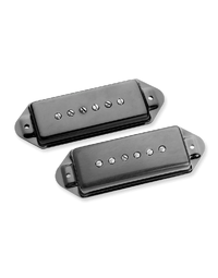 Seymour Duncan's Antiquity P90 Dog Ear pickups use two specially calibrated alnico 2 bar magnets, and custom neck and bridge coil winds to deliver the sweet, vintage correct growl of late 50s ES-330 P90 pickups. In the neck position, chords are full and round sounding, and single notes have a sweet, bouncy quality. In the bridge, chords have a gritty, honky midrange, and single notes are nice and articulate without sounding harsh. The neck pickup is also wound RW/RP to be hum-cancelling when paired with the bridge position model. If you remove our hand aged dog ear cover, you’ll find the same hand fabricated bobbin, plain enamel mag wire, and flatback tape that was made in Kalamazoo during the early days. These pickups are drop-in replacements for any standard Gibson P90 Dog Ear sized rout, and come with aged black covers.