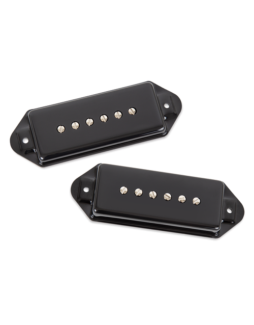 The innovative noiseless design of our P90 Silencer™ retains all the tone and appearance of the classic P90 pickup without the 60-cycle hum. We offer a vintage output model for the classic P90 tone and a hotter version for a more aggressive sound. These pickups are drop-in replacements for most standard P90 routs.