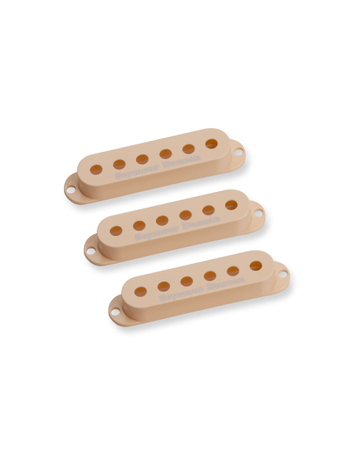Seymour Duncan's Strat pickup covers are designed to have exactly the same physical dimensions as a Fender American Standard Strat pickup cover. They will fit all of Seymour Duncan's SSL-model single coils (with the exception of the Quarter Pound models, which are too large for a cover). This is a set of three covers, with or without the Seymour Duncan logo printed in silver. The black glossy finish is designed to match the colour of Fender’s black covers. The cream coloured glossy finish is designed to look like an old ‘aged white’ cover. The off-white parchment coloured glossy finish is designed to match Fender’s standard white colour.