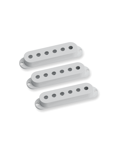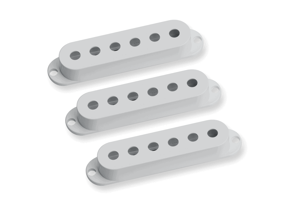 Seymour Duncan's Strat pickup covers are designed to have exactly the same physical dimensions as a Fender American Standard Strat pickup cover. They will fit all of Seymour Duncan's SSL-model single coils (with the exception of the Quarter Pound models, which are too large for a cover). This is a set of three covers, with or without the Seymour Duncan logo printed in silver. The black glossy finish is designed to match the colour of Fender’s black covers. The cream coloured glossy finish is designed to look like an old ‘aged white’ cover. The off-white parchment coloured glossy finish is designed to match Fender’s standard white colour.