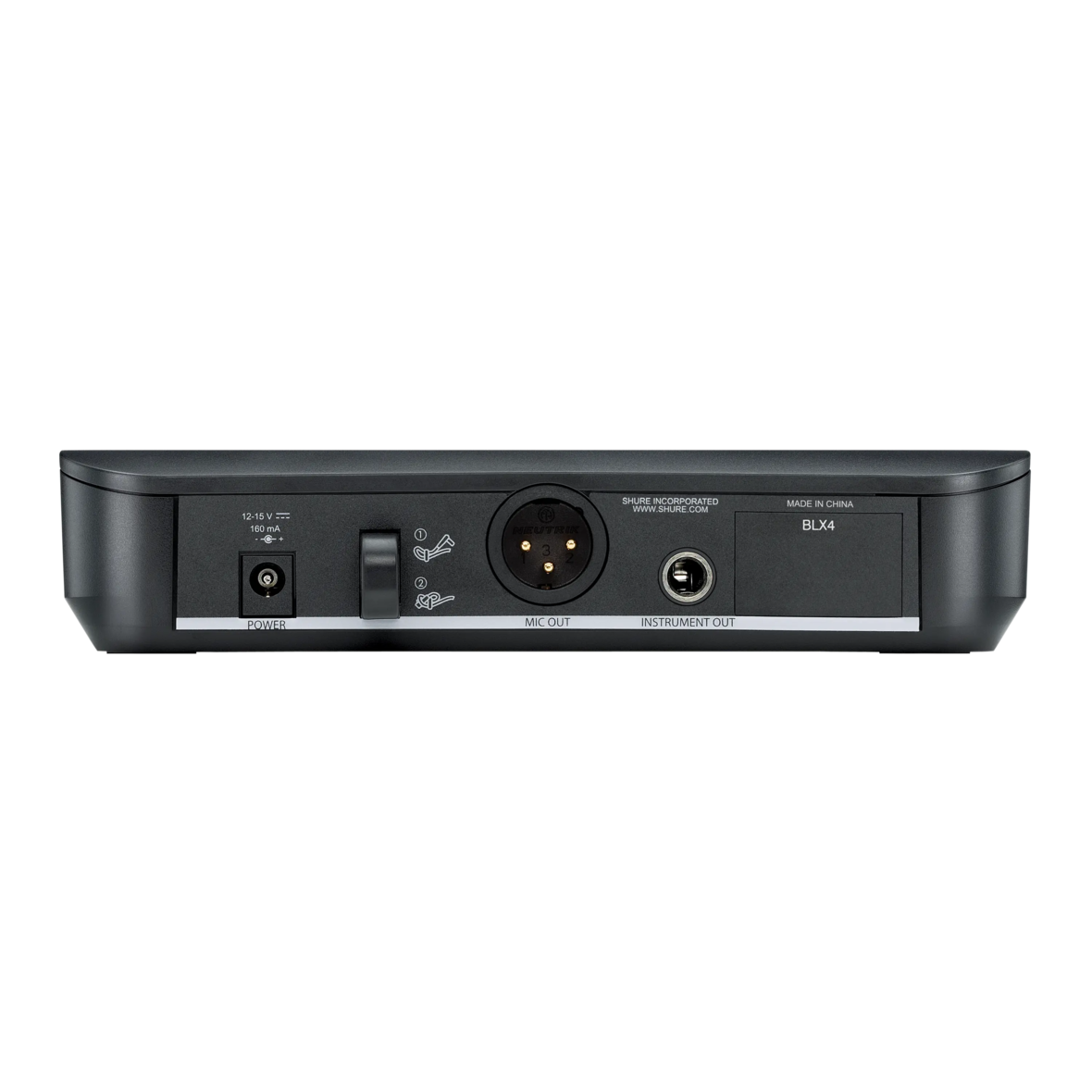 The Shure BLX24/B58 Wireless Vocal System delivers exceptional audio quality and reliable performance, perfect for live vocal applications. It includes the rugged BETA58A handheld transmitter with cardioid dynamic microphone, known for its clarity and projection, and the BLX4 single-channel receiver with built-in antenna diversity for stable signal transmission. With a frequency range of 662MHz-686MHz, this system is easy to set up with QuickScan one-touch frequency selection, which identifies the best available channel to avoid interference. It offers up to 14 hours of battery life from 2 AA batteries and a 300-foot range, allowing vocalists to move freely on stage. The system also includes XLR and 1/4" output options and a two-color LED status indicator.