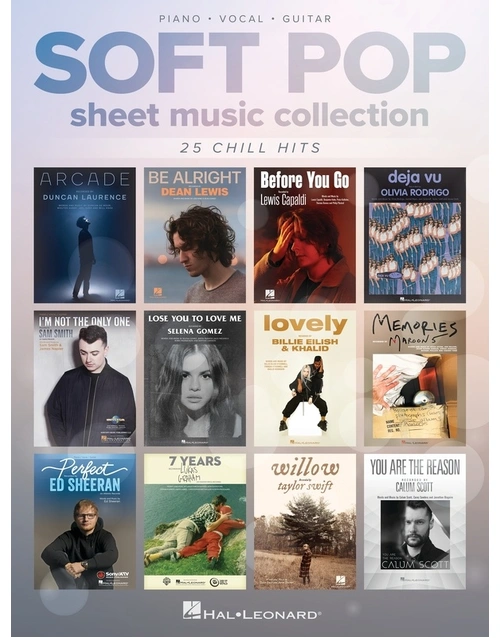 Get ready to chill with 25 great soft pop favorites arranged for piano and voice with guitar chord frames. Songs include: Arcade (Duncan Laurence) • Be Alright (Dean Lewis) • Before You Go (Lewis Capaldi) • Deja Vu (Olivia Rodrigo) • I'm Not the Only One (Sam Smith) • Lose You to Love You (Selena Gomez) • Lovely (Billie Eilish & Khalid) • Memories (Maroon 5) • Perfect (Ed Sheeran) • 7 Years (Lukas Graham) • When We Were Young (Adele) • Willow (Taylor Swift) • You Are the Reason (Calum Scott) • and more.