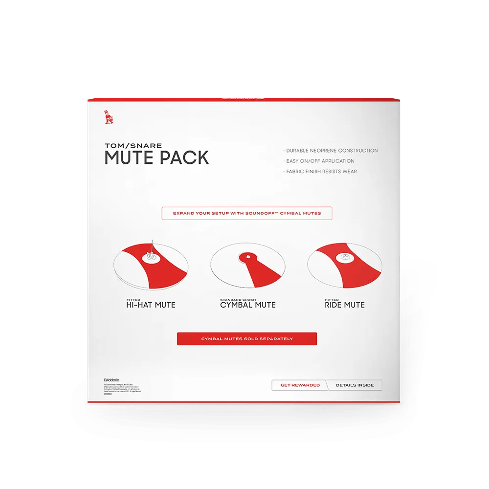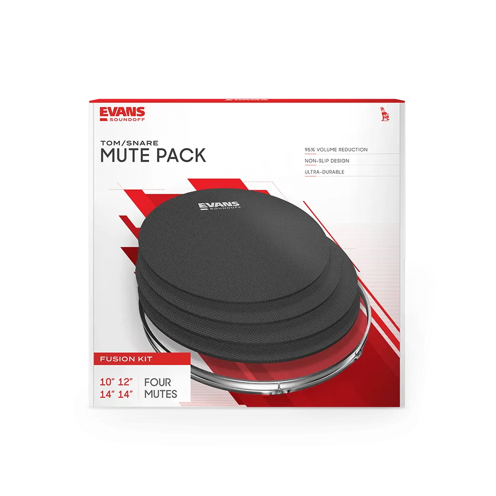 EVANS SoundOff Mutes significantly reduce volume while you practice on your traditional drum set. SoundOff Mutes provide excellent stick response and are durable enough for the heaviest hitters. SoundOff Mutes are available for purchase in pre-configured packs or as individual mutes.