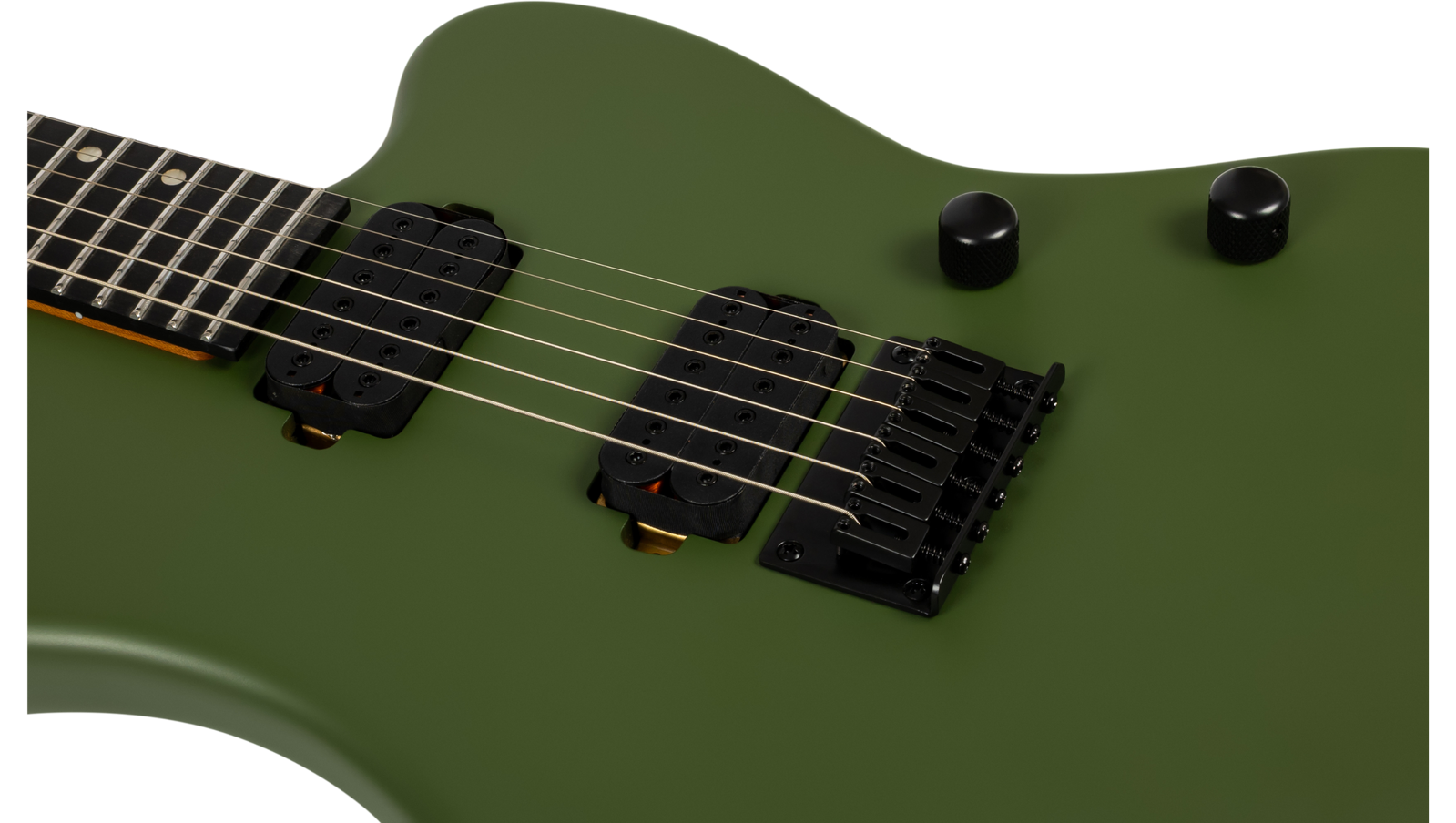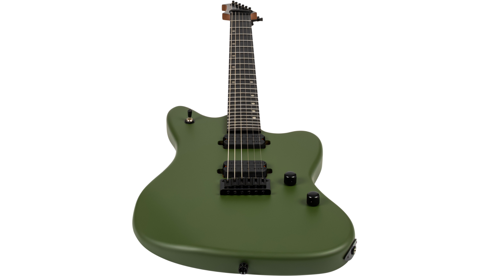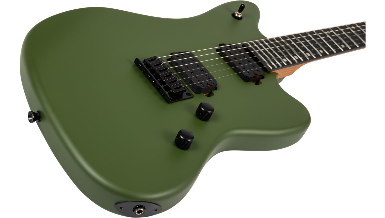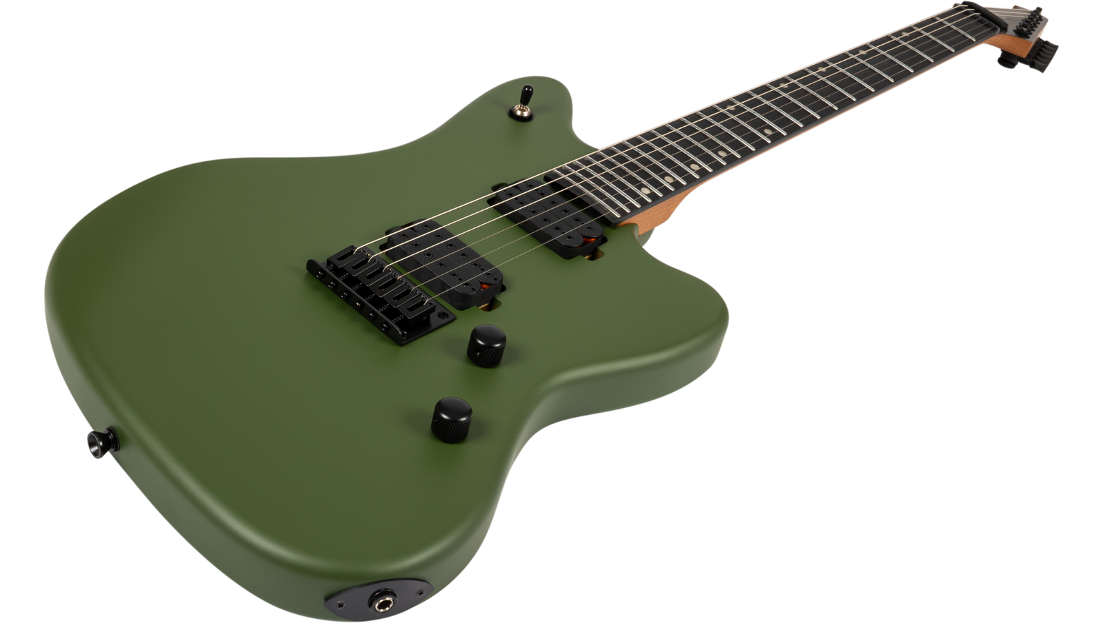 The roasted poplar body and roasted maple neck create a stable, responsive platform with a slightly tighter low end and a more consistent feel, whether you’re playing in a hot venue, a cold rehearsal space, or under stage lights. Roasting reduces moisture in the wood, which helps with tuning stability and keeps the neck feeling solid over time. The Modern D neck profile and 14" radius make this a fast-playing setup, with 24 jumbo frets giving you plenty of room for bends and upper register work. It’s geared more towards fluid lead playing and precise rhythm work than vintage-style grip and chord-heavy playing.