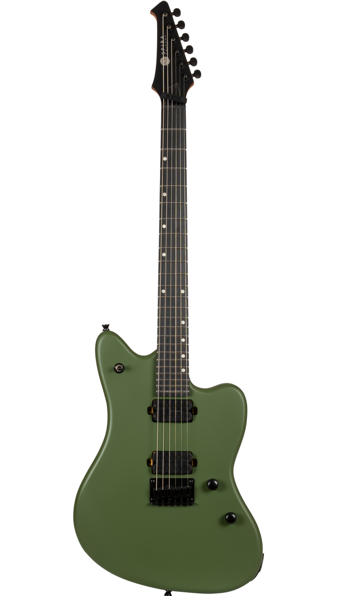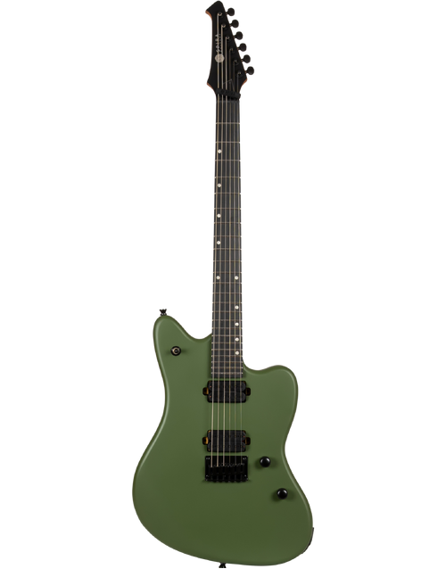 The Spira Guitars J-400 MGR Electric Guitar EB Satin Dark Green is built for players who like the comfort of an offset body but need the precision and power to handle modern rock and metal. The Jazzmaster-style shape sits naturally whether you’re standing or seated, giving you a balanced feel that works well for longer sessions and live sets.