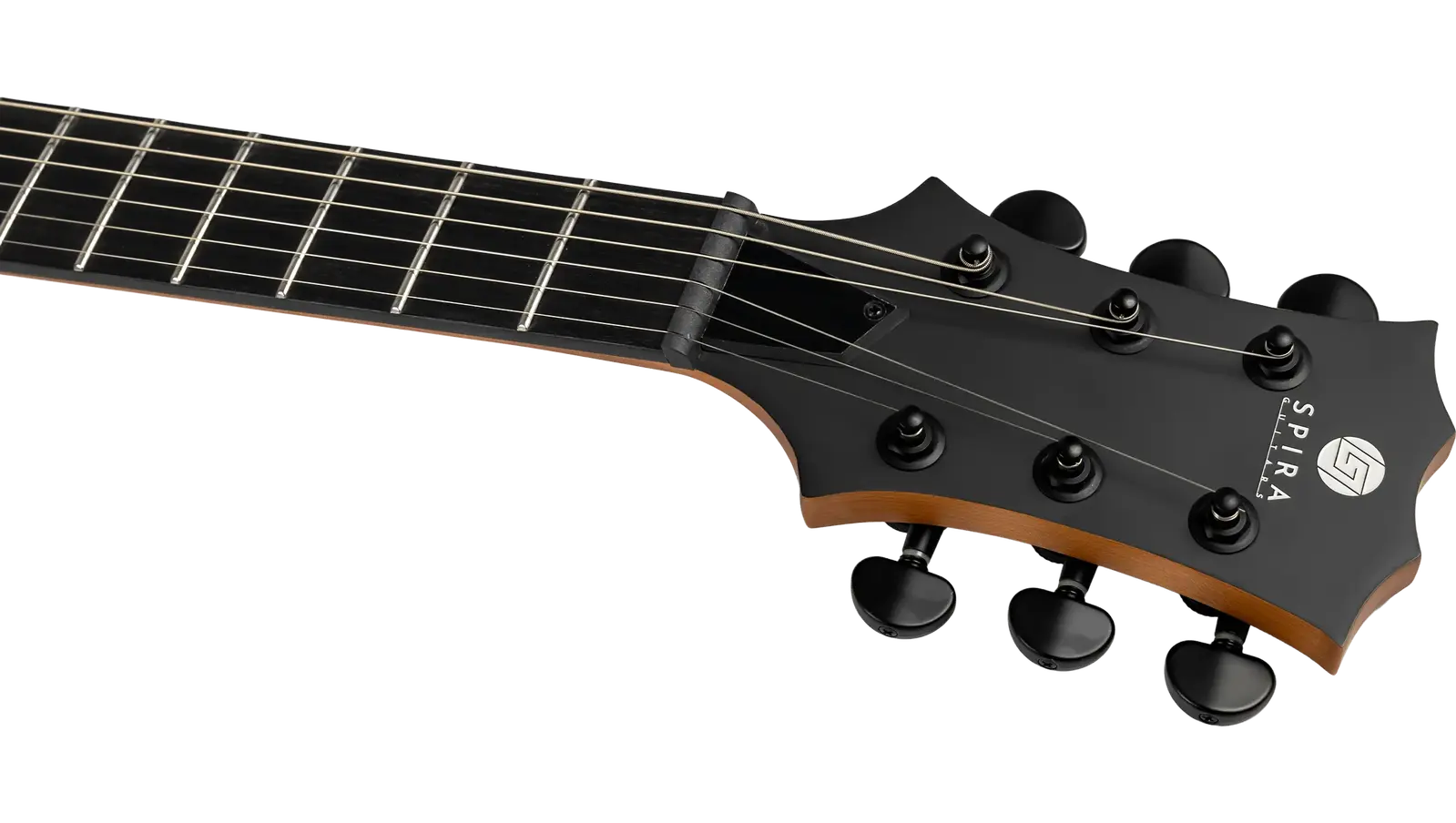 The Spira Guitars L-400 redefines the classic Les Paul-style body shape with Spira’s contemporary design, offering a powerful instrument that handles crushing riffs and fiery solos with ease. Built with a roasted poplar body and Canadian roasted maple neck, the L-400 combines durability and comfort for extended playability. The Ebony Tech fretboard with 24 jumbo frets allows for smooth, responsive performance across advanced techniques and genres.