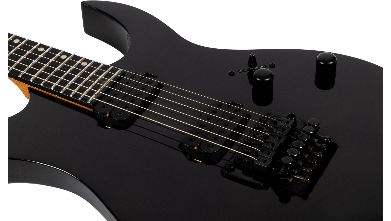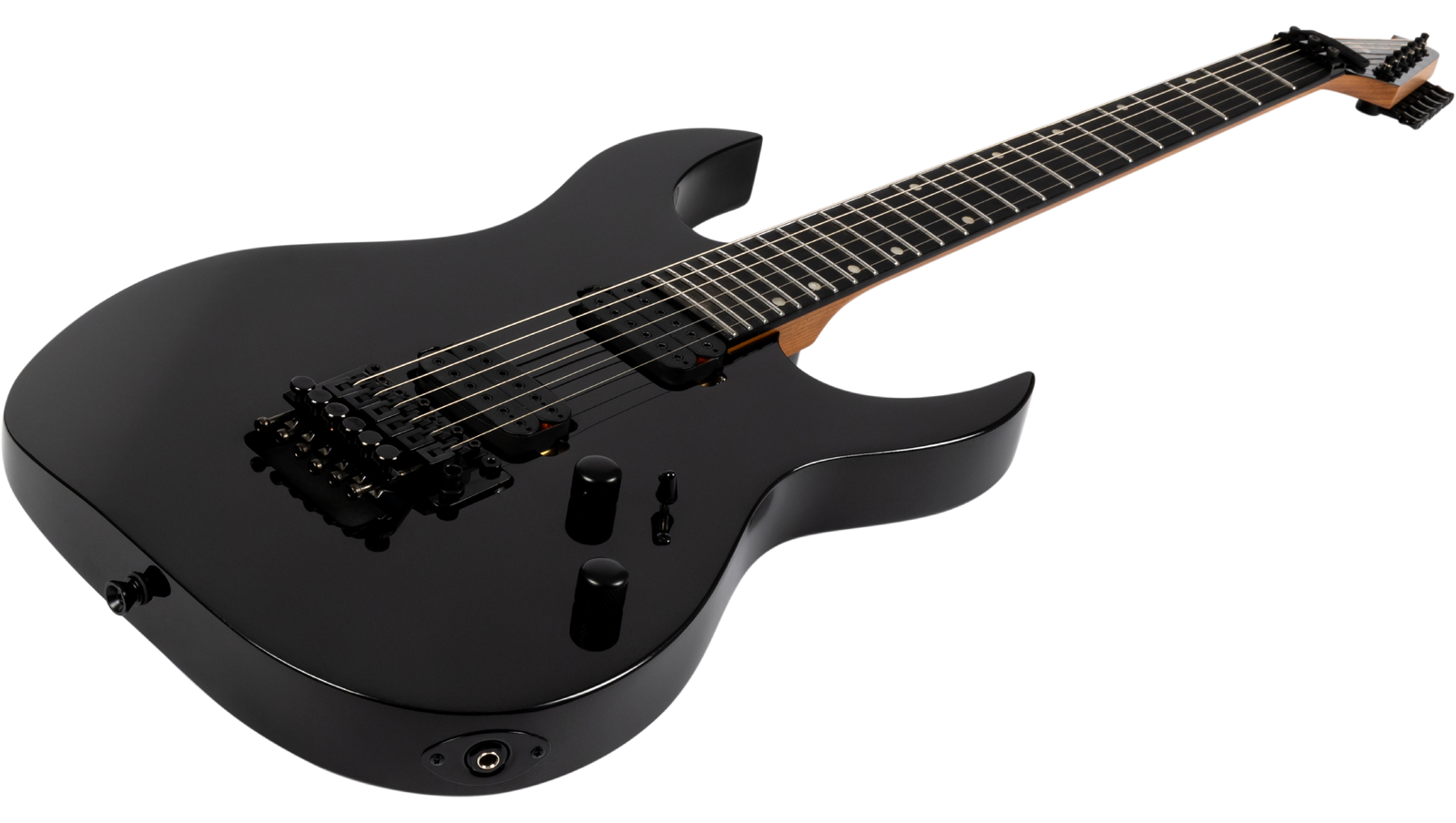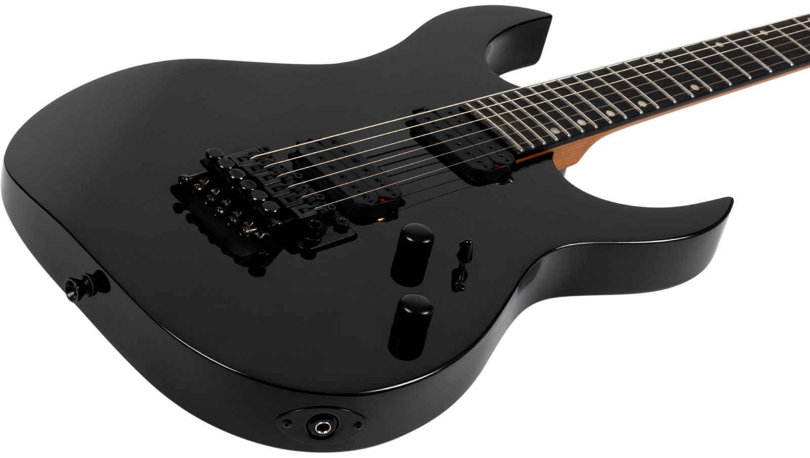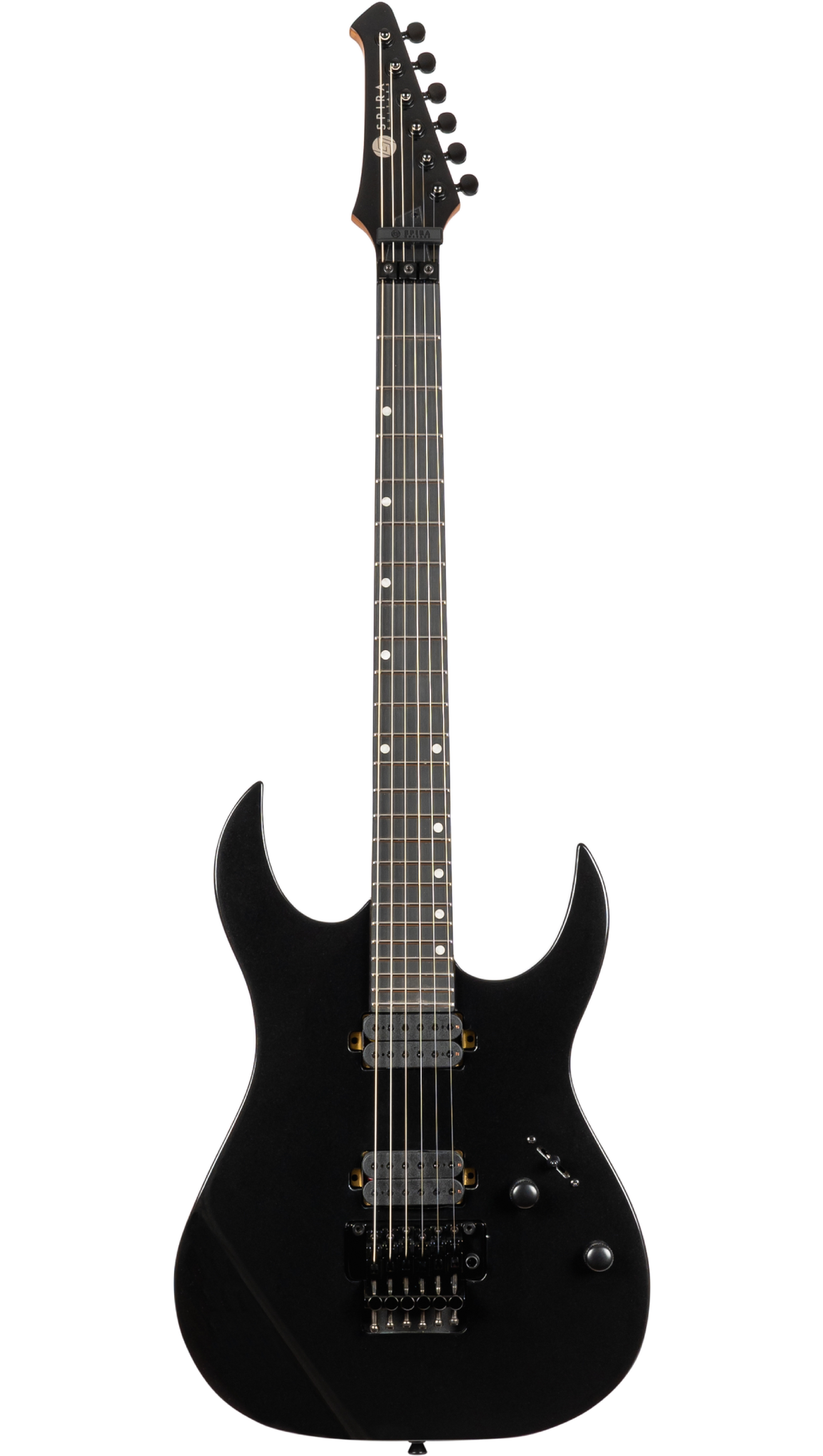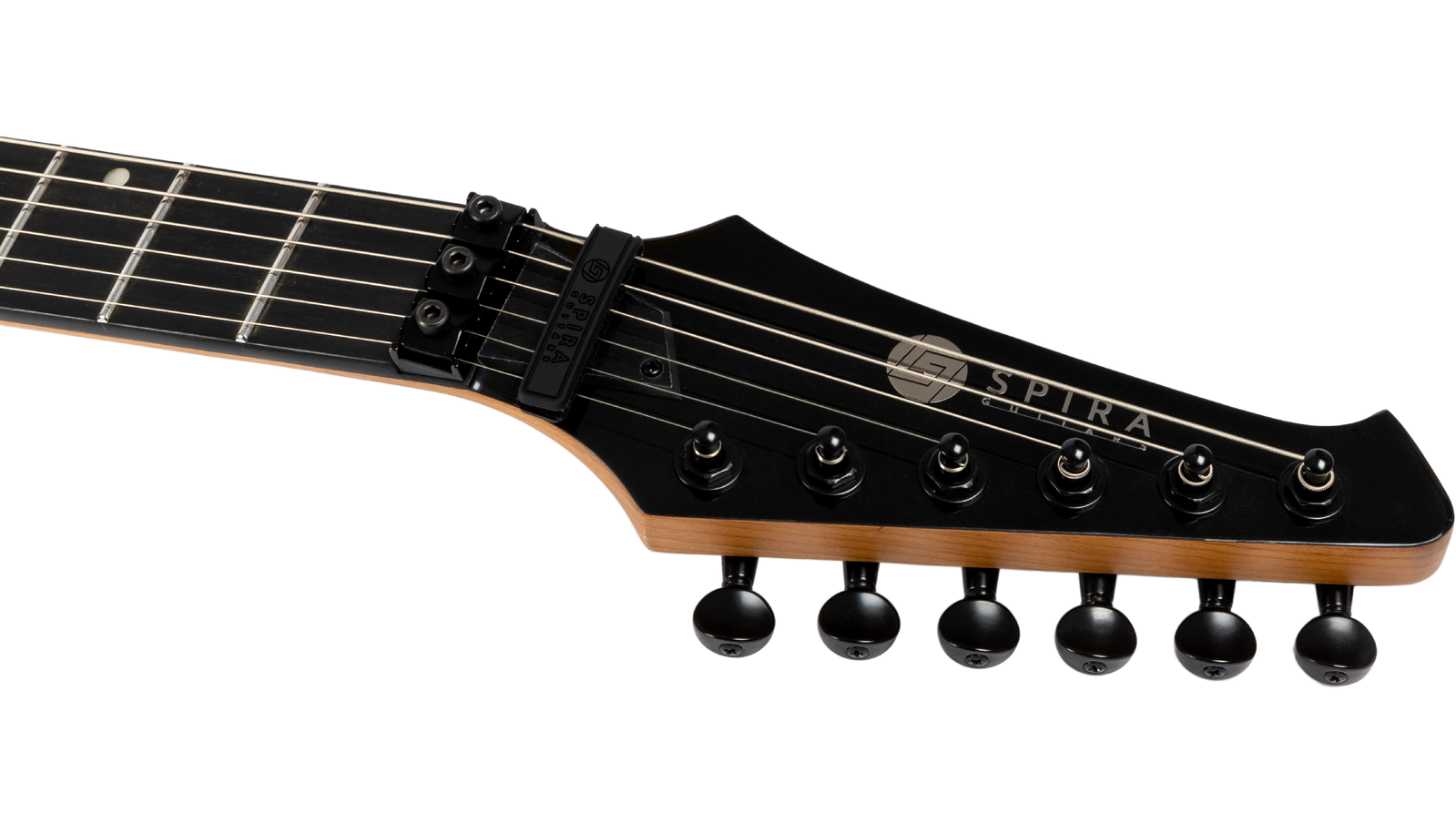 The Spira Guitars S-420 is a modern double-cutaway electric built for high-performance rock and metal. Its roasted poplar body is paired with a satin Canadian roasted maple neck and Ebony Tech fretboard for fast, stable playability. The 24 jumbo frets and 14″ radius make for smooth bends and effortless shredding, while the locking tremolo bridge offers tuning stability under aggressive vibrato techniques. Spira’s custom Villain humbuckers with 12k ceramic output deliver high-gain clarity and punch, perfect for heavy riffs and soaring leads. Finished in gloss Metallic Black with sleek black hardware, the S-420 balances style with serious performance.