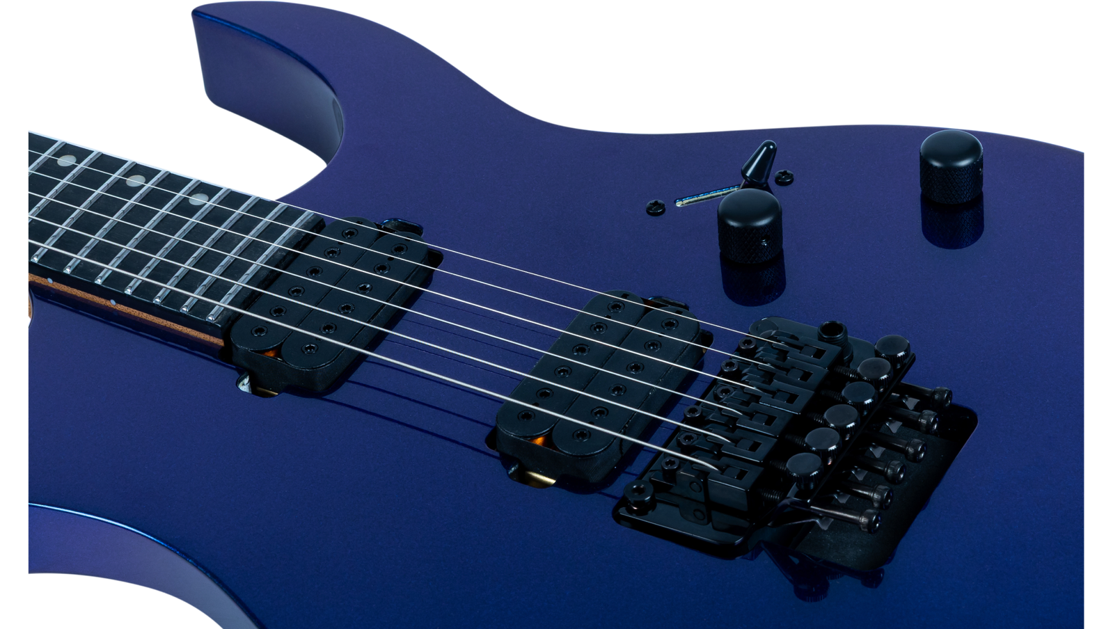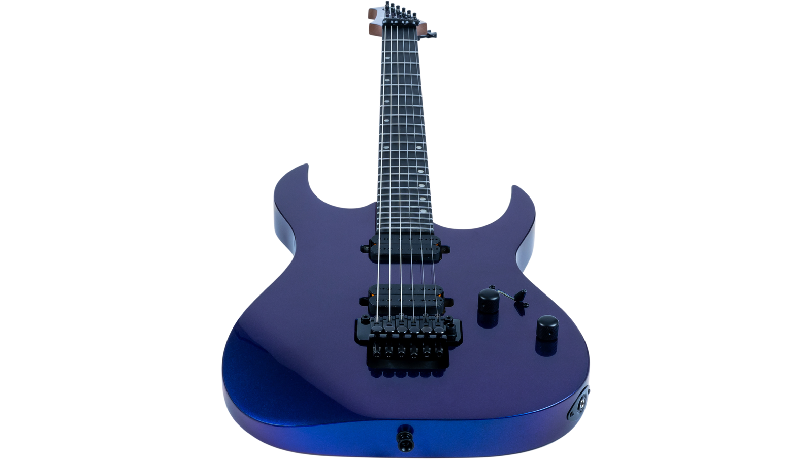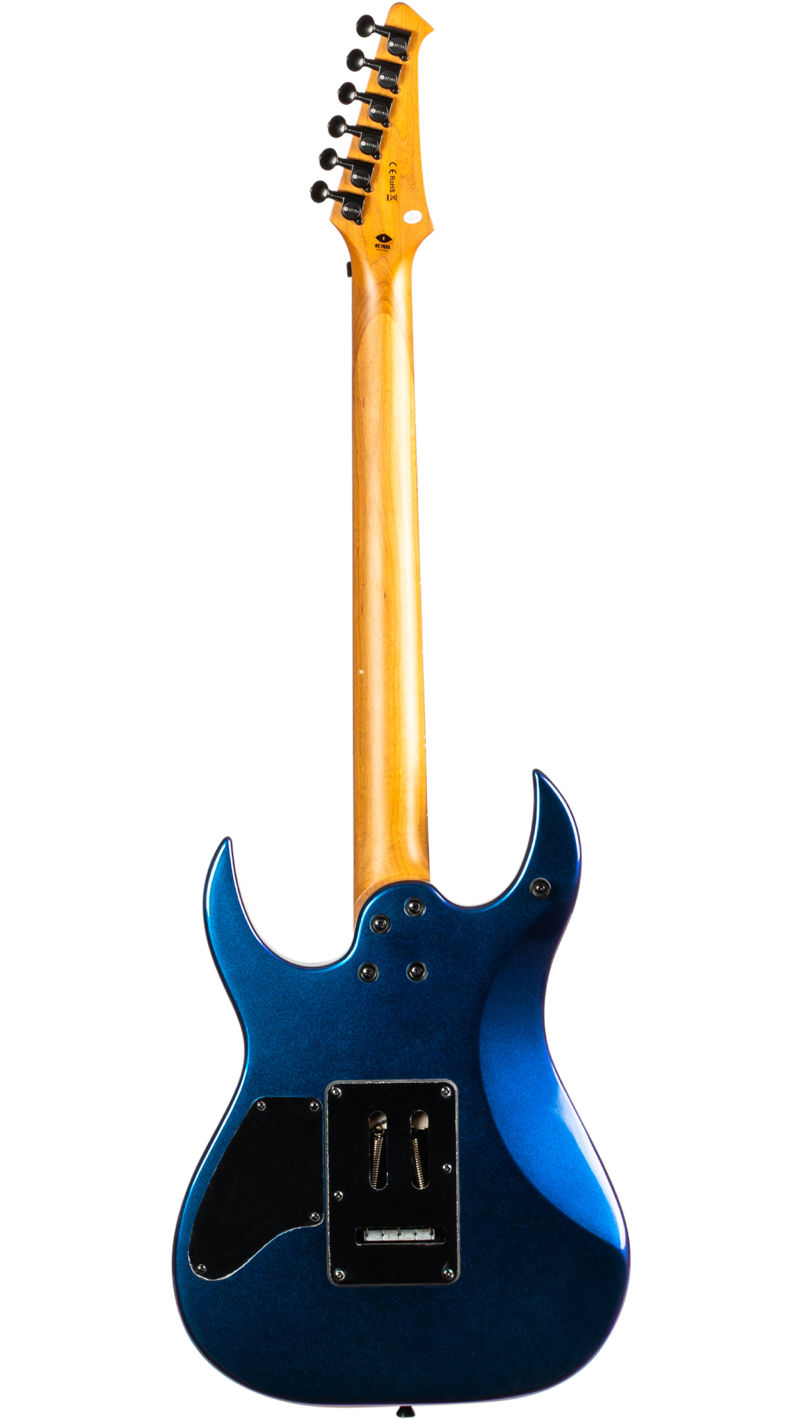The Spira Guitars S-420 is a modern double-cutaway electric built for high-performance rock and metal. Its roasted poplar body is paired with a satin Canadian roasted maple neck and Ebony Tech fretboard for fast, stable playability. The 24 jumbo frets and 14″ radius make for smooth bends and effortless shredding, while the locking tremolo bridge offers tuning stability under aggressive vibrato techniques. Spira’s custom Villain humbuckers with 12k ceramic output deliver high-gain clarity and punch, perfect for heavy riffs and soaring leads. Finished in gloss Chameleon with sleek black hardware, the S-420 balances style with serious performance.