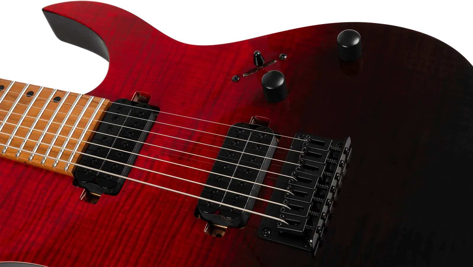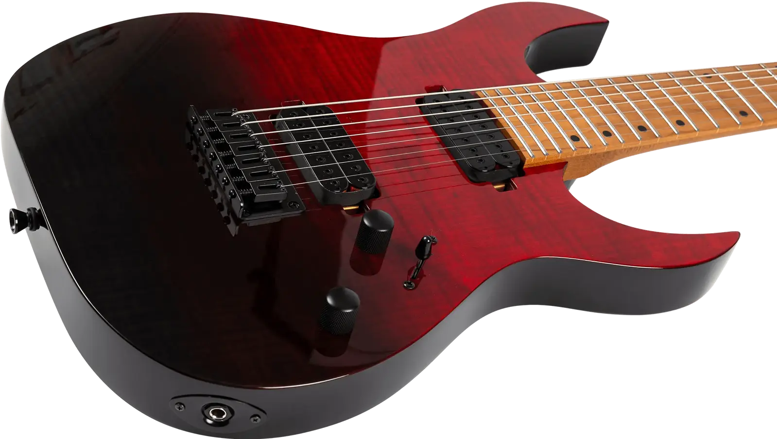 The Spira Guitars S-457 7-String Flame Top Electric Guitar is a premium, high-performance rock machine designed for guitarists who crave incredible tone and striking visuals. Built with a roasted poplar body and a glossy flame maple top, the S-457 pairs aesthetics with reliability. Its Canadian roasted maple neck, crafted in a modern D shape, and matching roasted maple fretboard create a smooth, fast feel, perfect for intricate solos and heavy riffs.