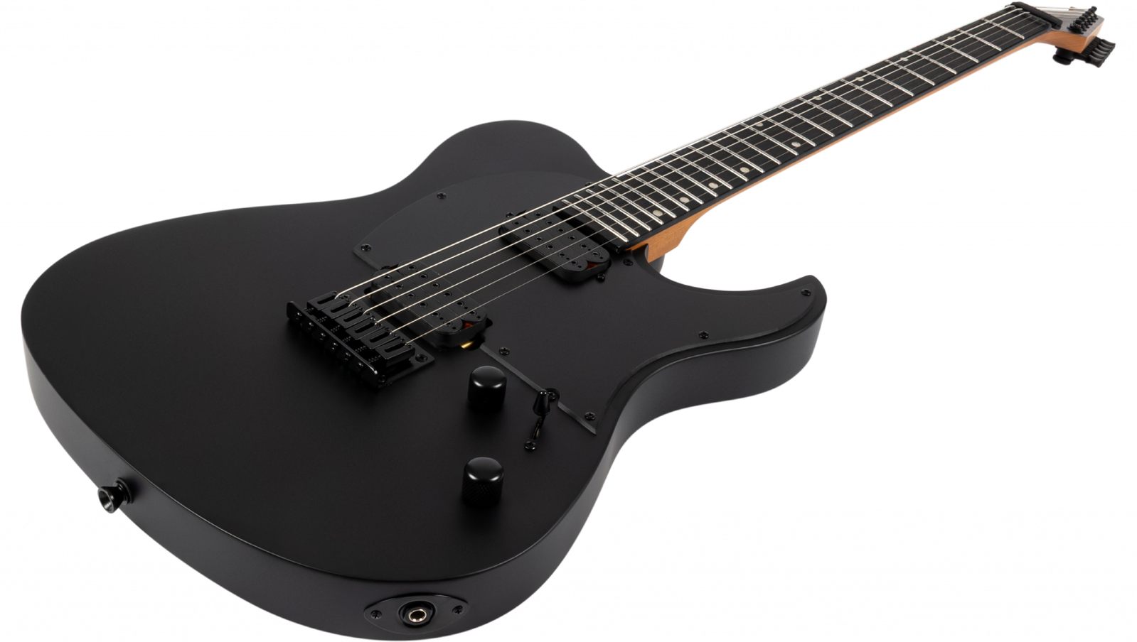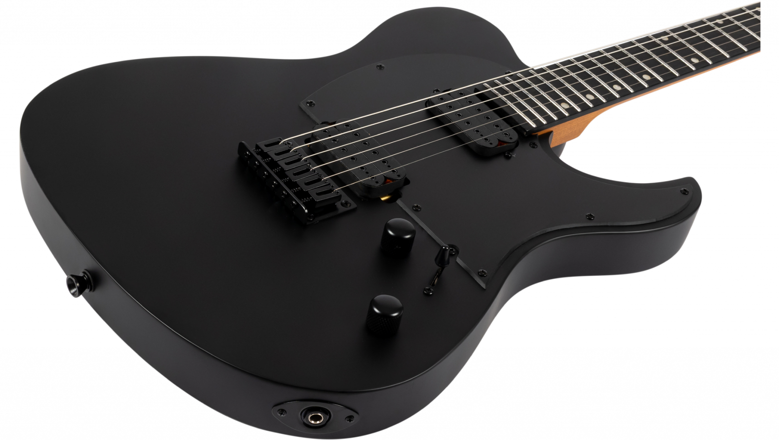 The Spira T-400 MBK BAR takes the classic T-style silhouette into baritone territory, offering a 27" scale for tight low-end response and extended tuning stability. Crafted with a roasted poplar body, roasted Canadian maple neck, and Ebony Tech fretboard, it delivers a refined, modern playing feel. Equipped with Spira Villain high-output humbuckers, it’s built to handle high-gain riffing and articulate lead work. With locking tuners, 24 jumbo frets, and rock-solid hardware, the T-400 Baritone is ready for aggressive playing styles and studio precision alike.