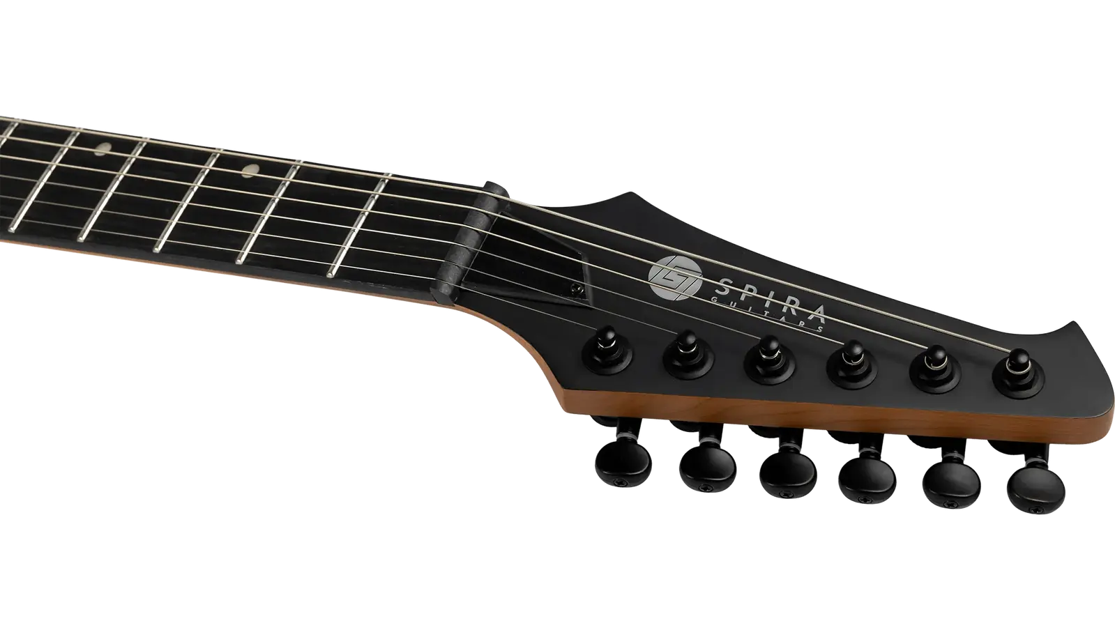 Equipped with Spira’s Villain humbucker pickups, the T-400 delivers versatile, commanding tones that shine in high-gain environments. Premium hardware, including locking tuners, ensures reliable tuning stability and precise intonation, making this guitar a great choice for the stage and studio alike.
