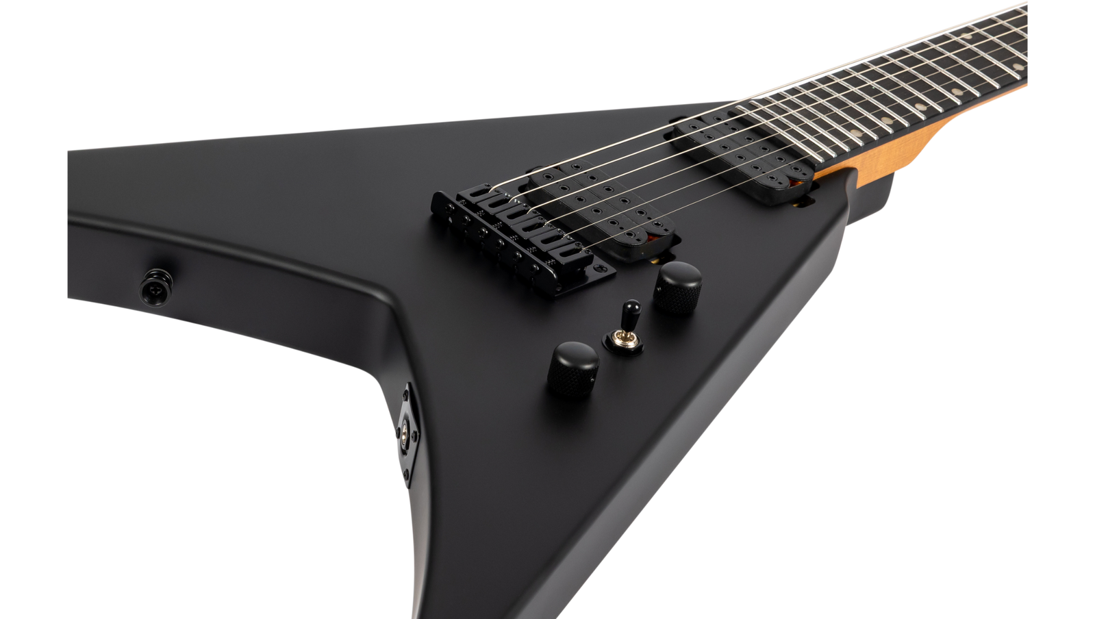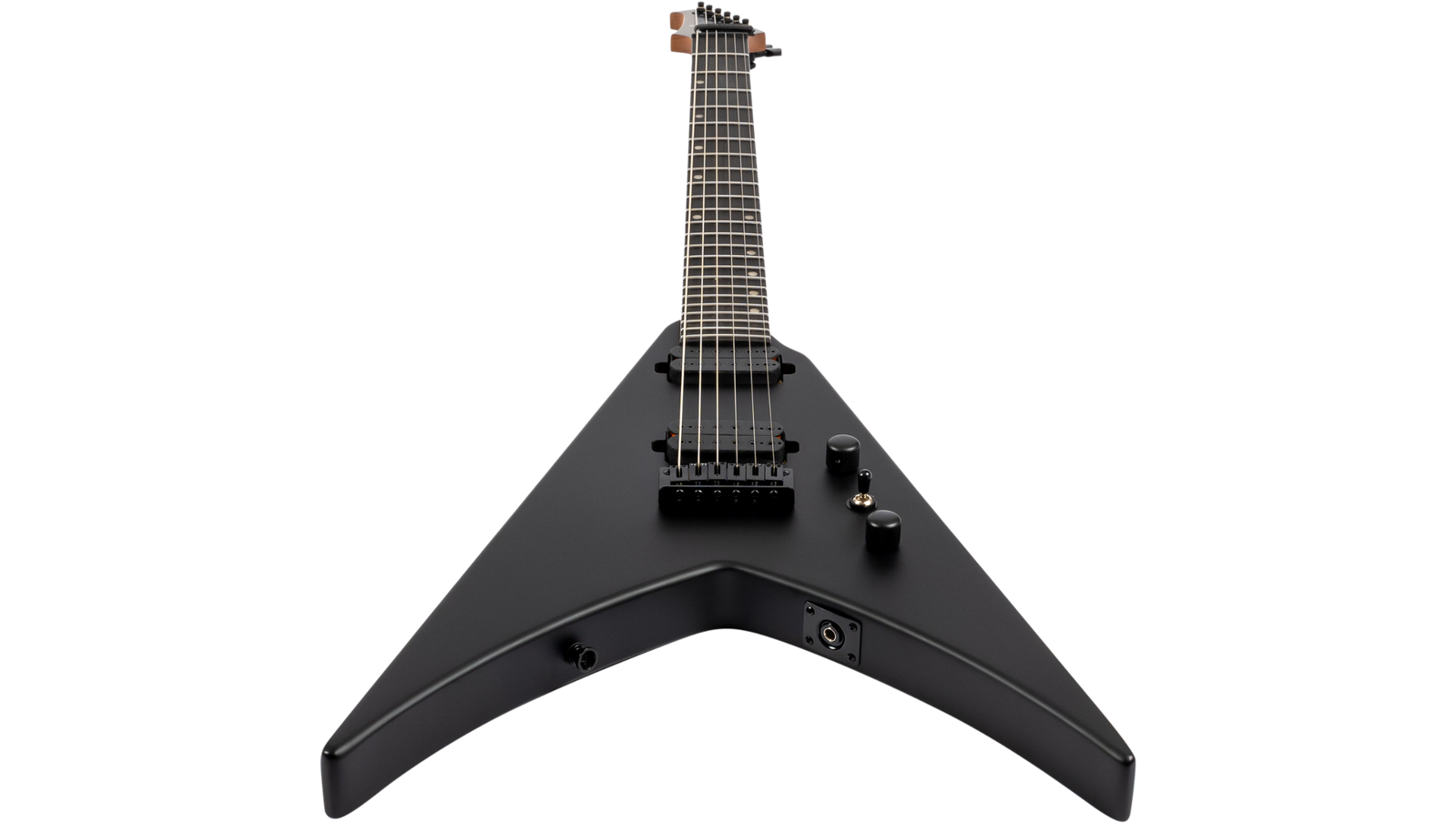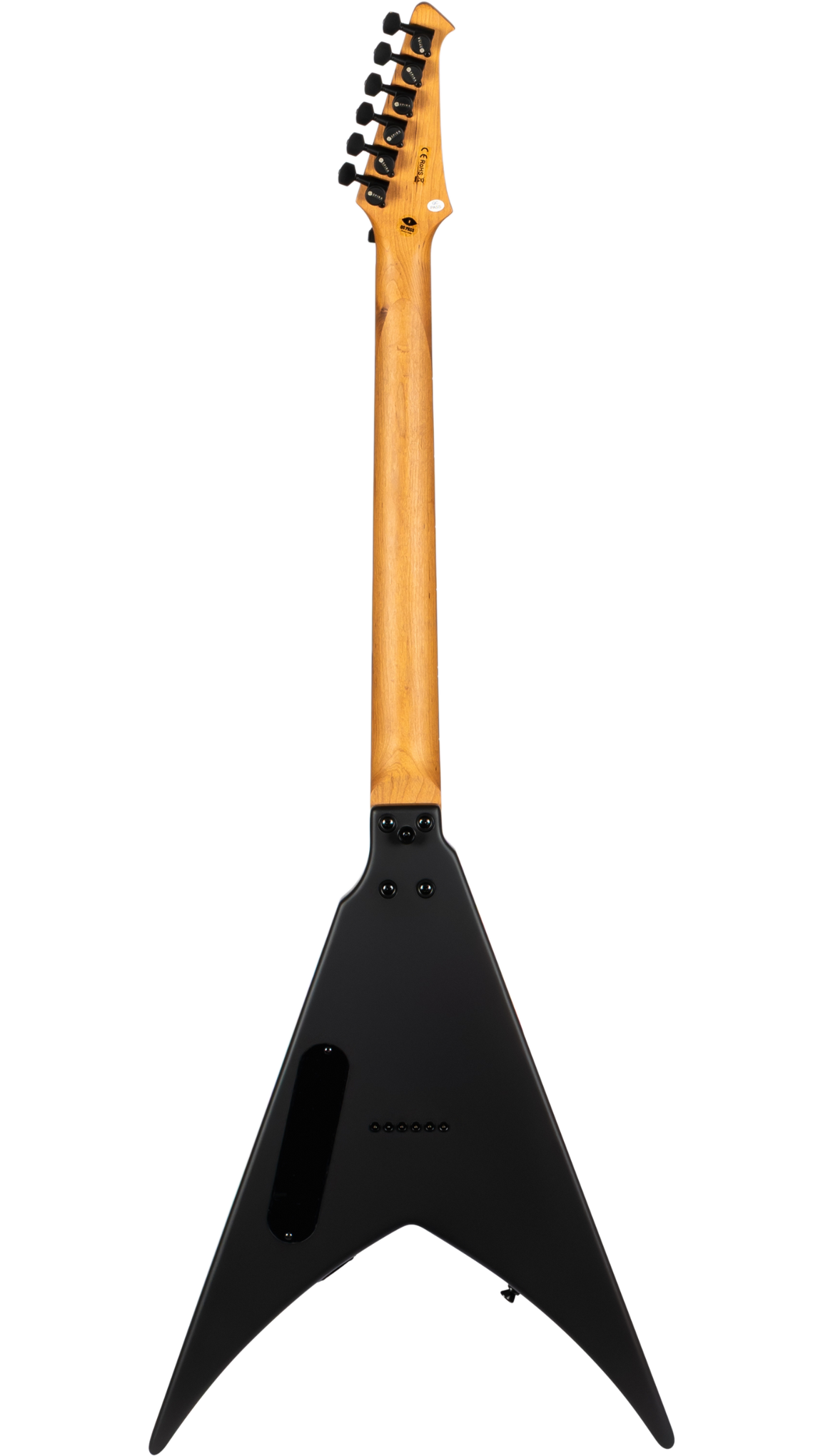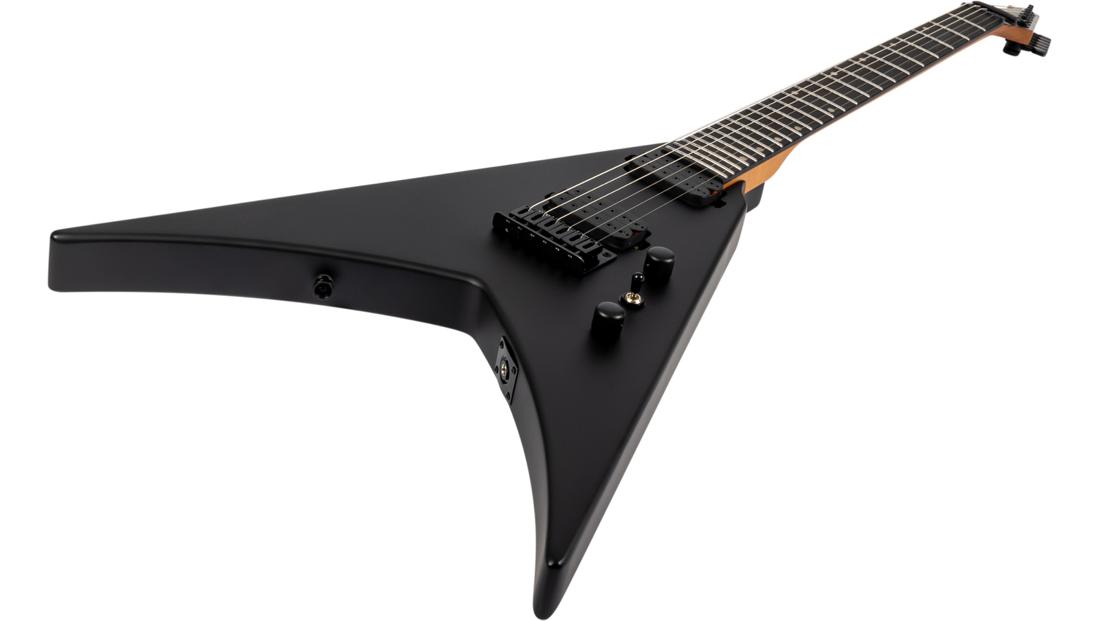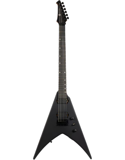The Spira Guitars V-400 is a bold, modern reimagining of the classic V-shape, designed for speed, power, and precision. Its roasted poplar body and satin-finished Canadian roasted maple neck offer a comfortable yet rugged feel, while the Ebony Tech fretboard with 24 jumbo frets ensures fast, articulate playing. Featuring Spira’s custom high-output Villain humbuckers with ceramic magnets, the V-400 delivers punchy, aggressive tones ideal for high-gain riffing and cutting solos. A fixed bridge and locking tuners provide rock-solid tuning stability, making it equally reliable on stage or in the studio. Finished in sleek satin black hardware, it’s a visually and sonically uncompromising instrument.