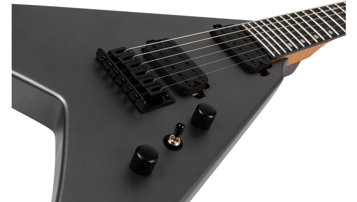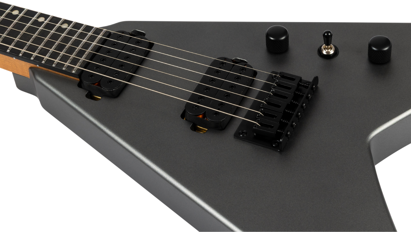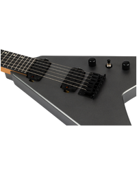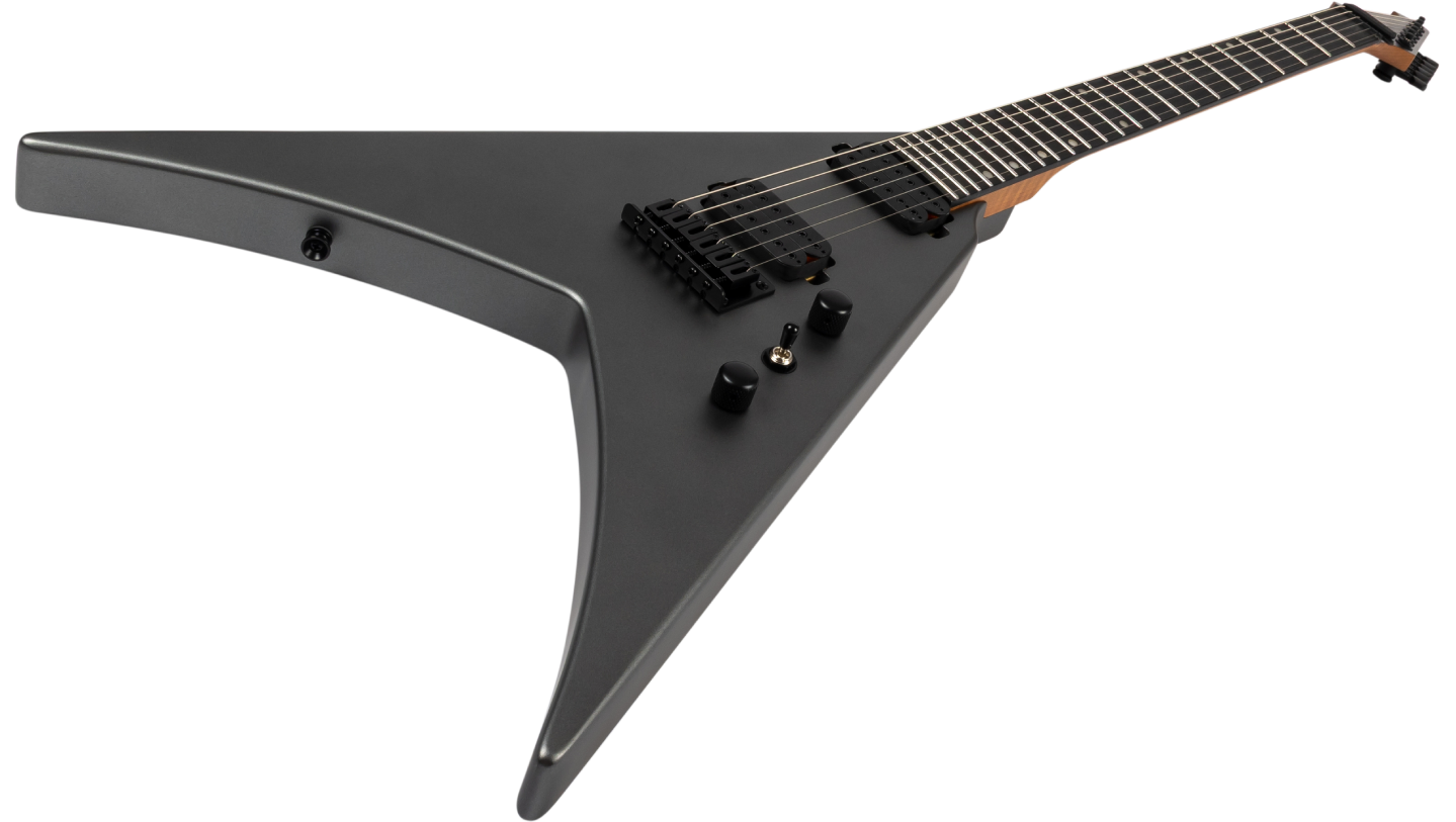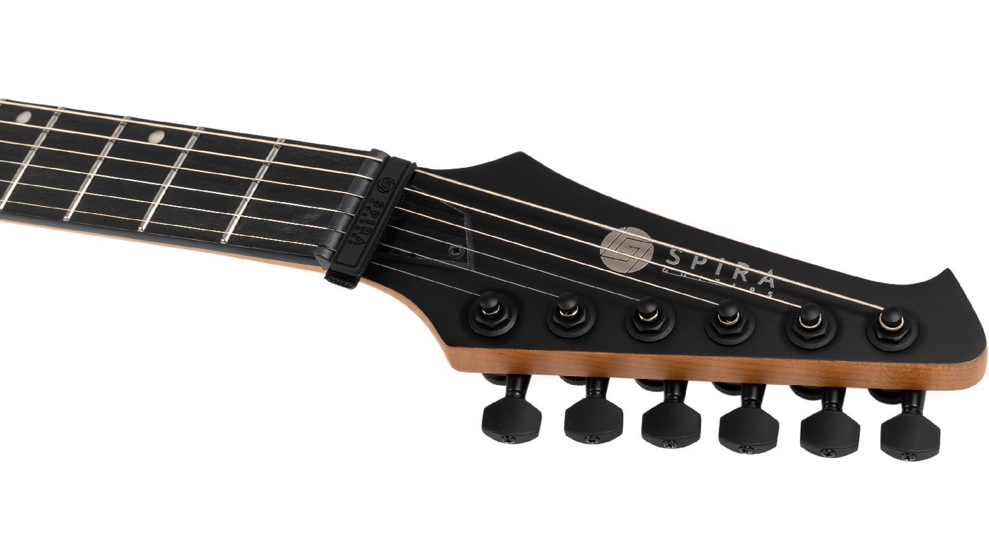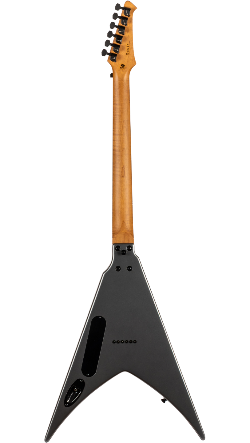 The Spira Guitars V-400 is a bold, modern reimagining of the classic V-shape, designed for speed, power, and precision. Its roasted poplar body and satin-finished Canadian roasted maple neck offer a comfortable yet rugged feel, while the Ebony Tech fretboard with 24 jumbo frets ensures fast, articulate playing. Featuring Spira’s custom high-output Villain humbuckers with ceramic magnets, the V-400 delivers punchy, aggressive tones ideal for high-gain riffing and cutting solos. A fixed bridge and locking tuners provide rock-solid tuning stability, making it equally reliable on stage or in the studio. Finished in sleek satin black hardware, it’s a visually and sonically uncompromising instrument.