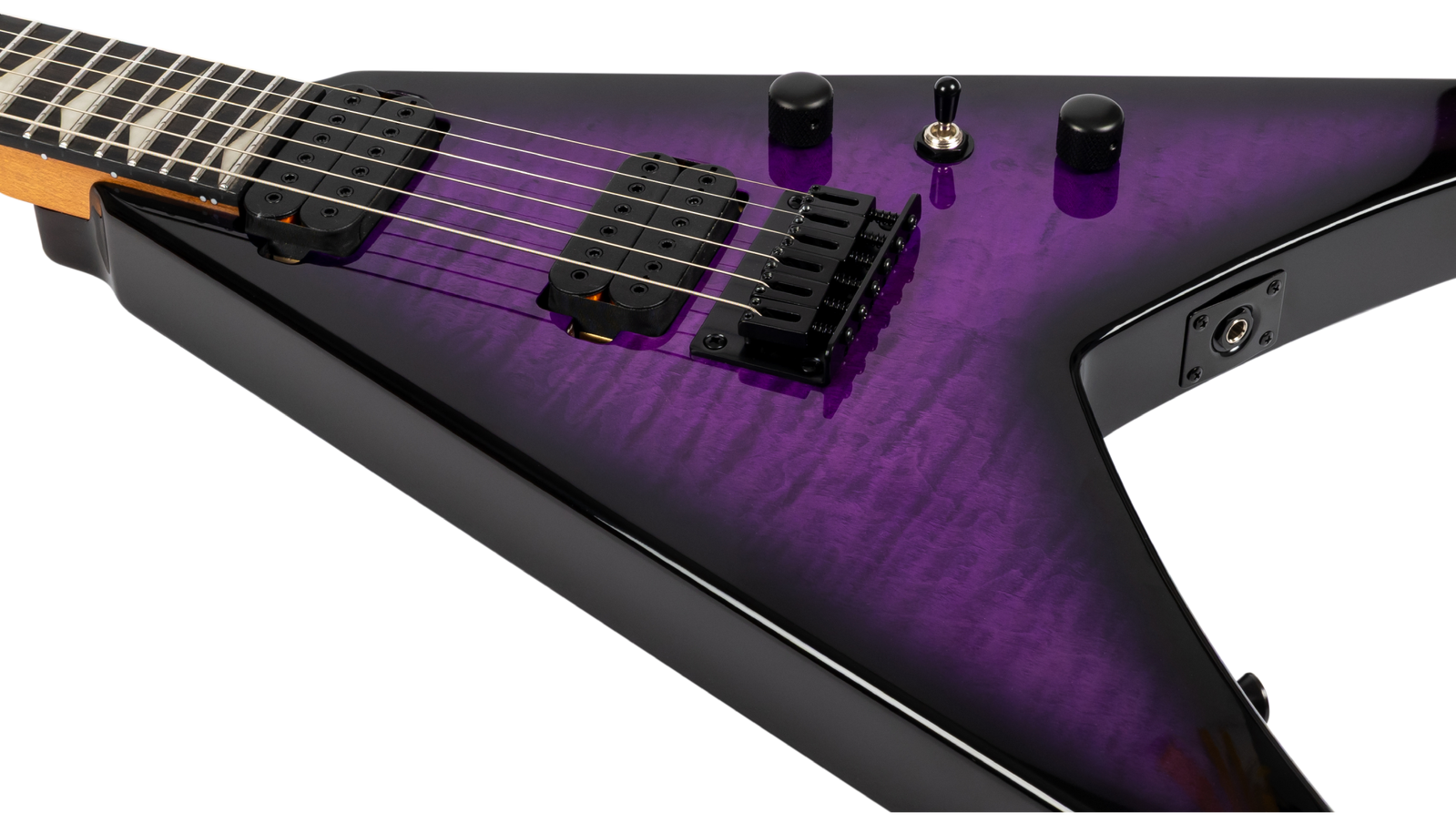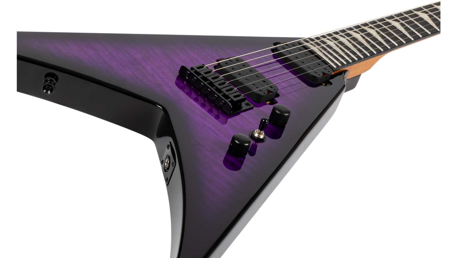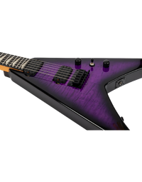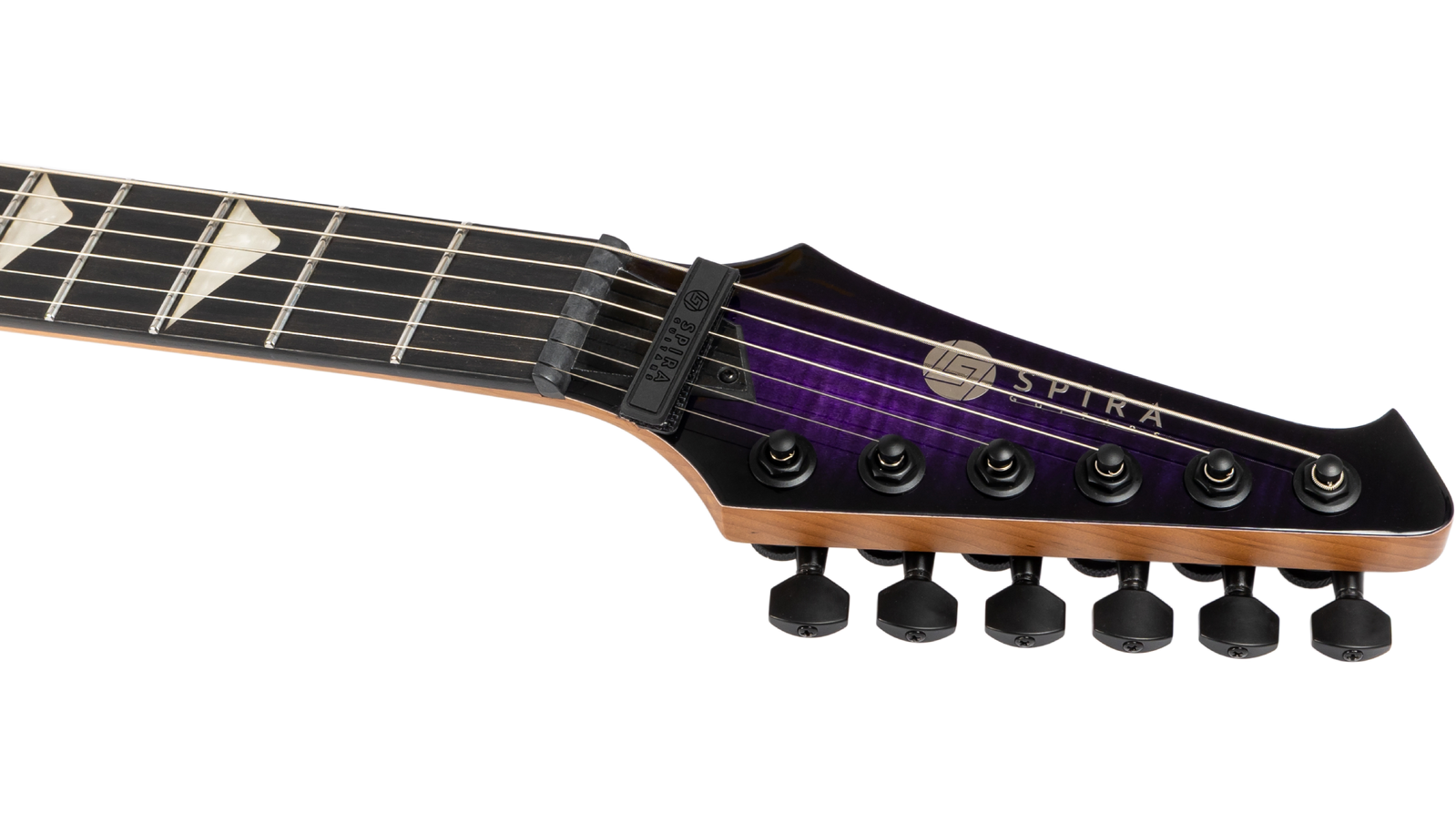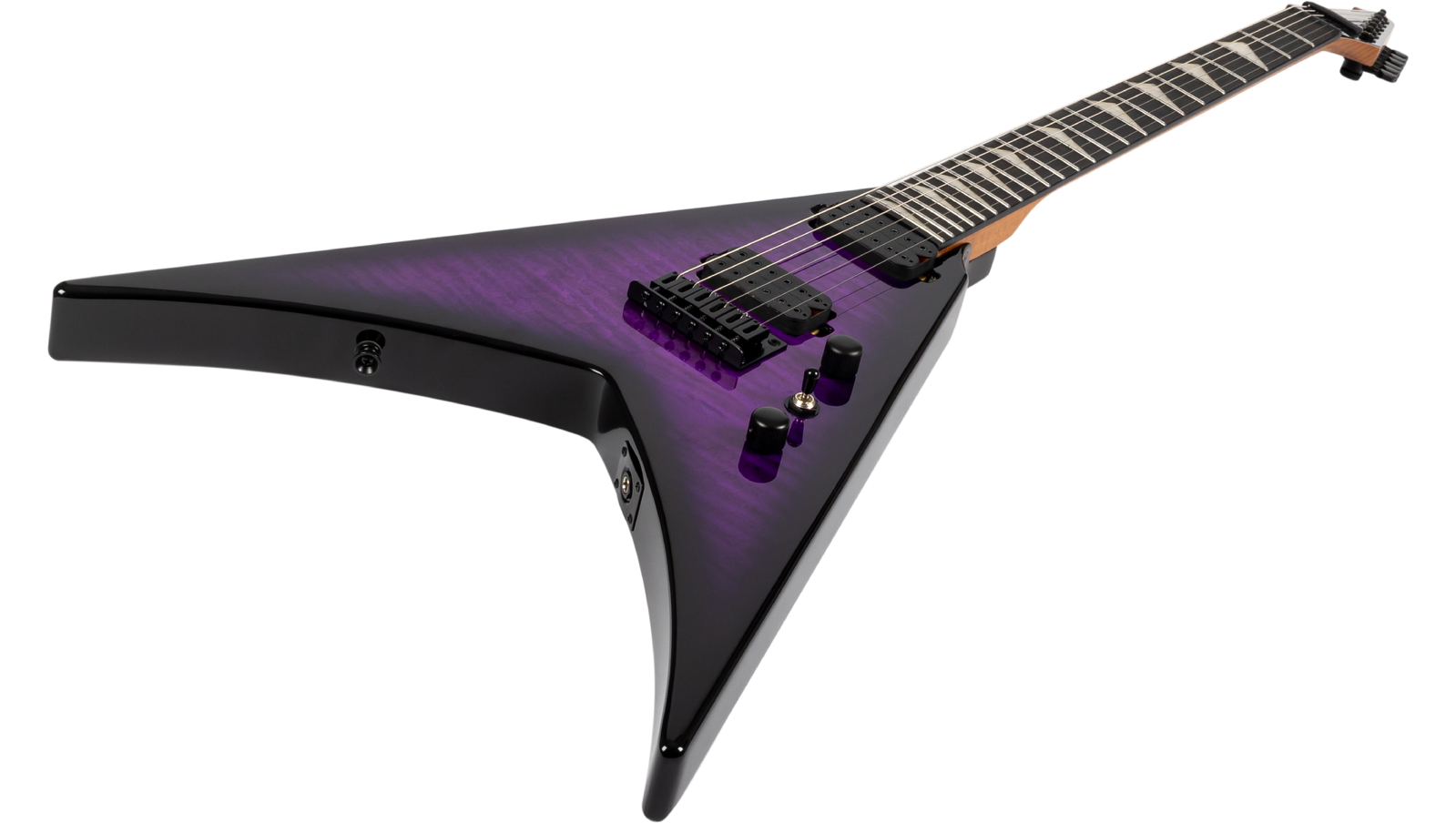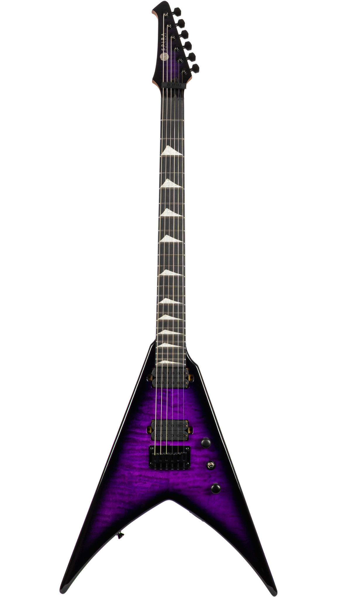The Spira Guitars V-500 TPP E in Transparent Purple is a high-performance V-style electric guitar designed for power and precision. With a mahogany body topped by flamed maple, it delivers rich, resonant tone with strong sustain and articulate highs. The satin Canadian roasted maple neck and fast Ebony Tech fretboard with 24 jumbo frets make for a smooth, effortless playing experience. Spira’s Villain high-output humbuckers provide punchy, dynamic tones with plenty of clarity, even under heavy gain. A fixed bridge and locking tuners ensure stable tuning and precise intonation, whether on stage or in the studio. The gloss Transparent Purple finish adds a bold visual edge to match its sonic aggression.