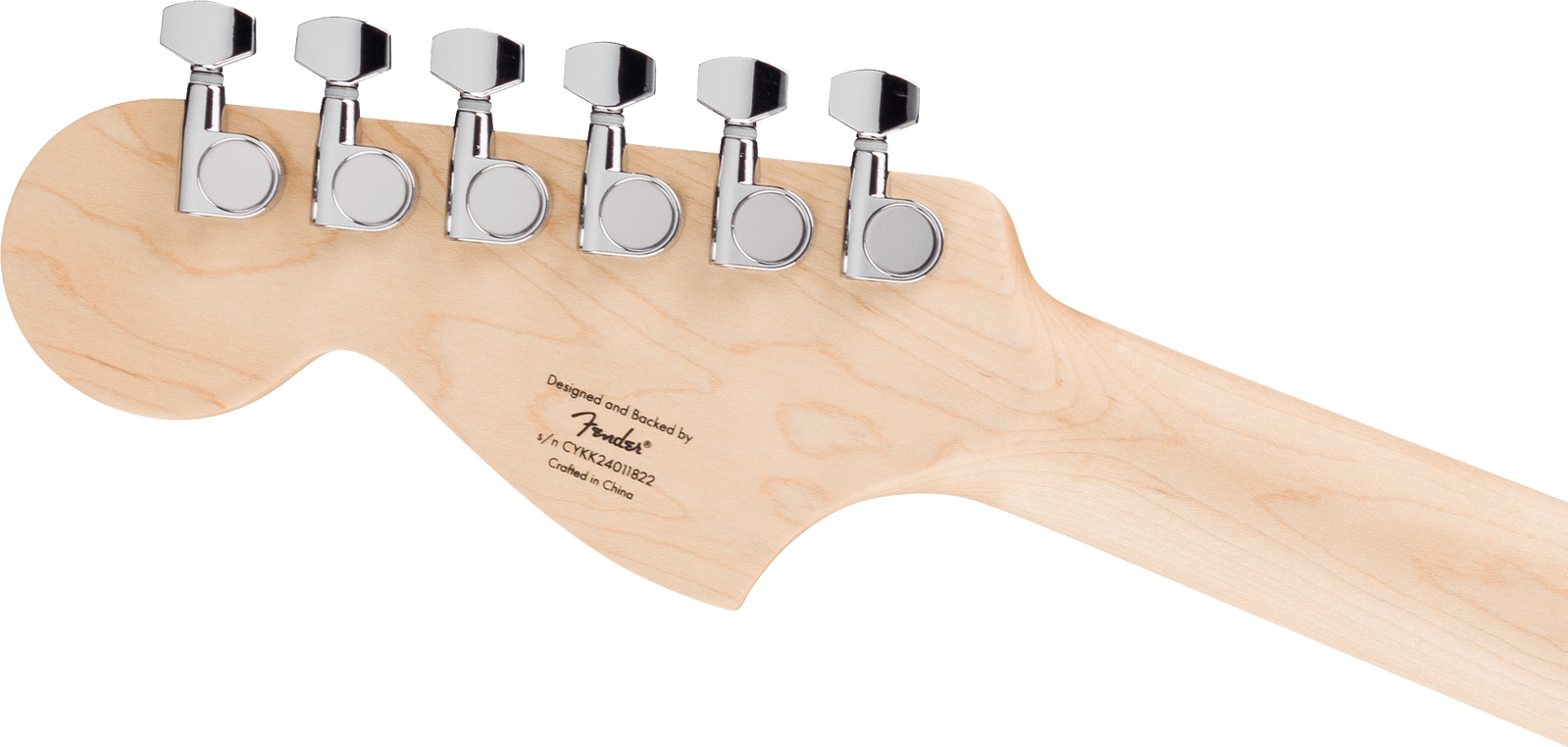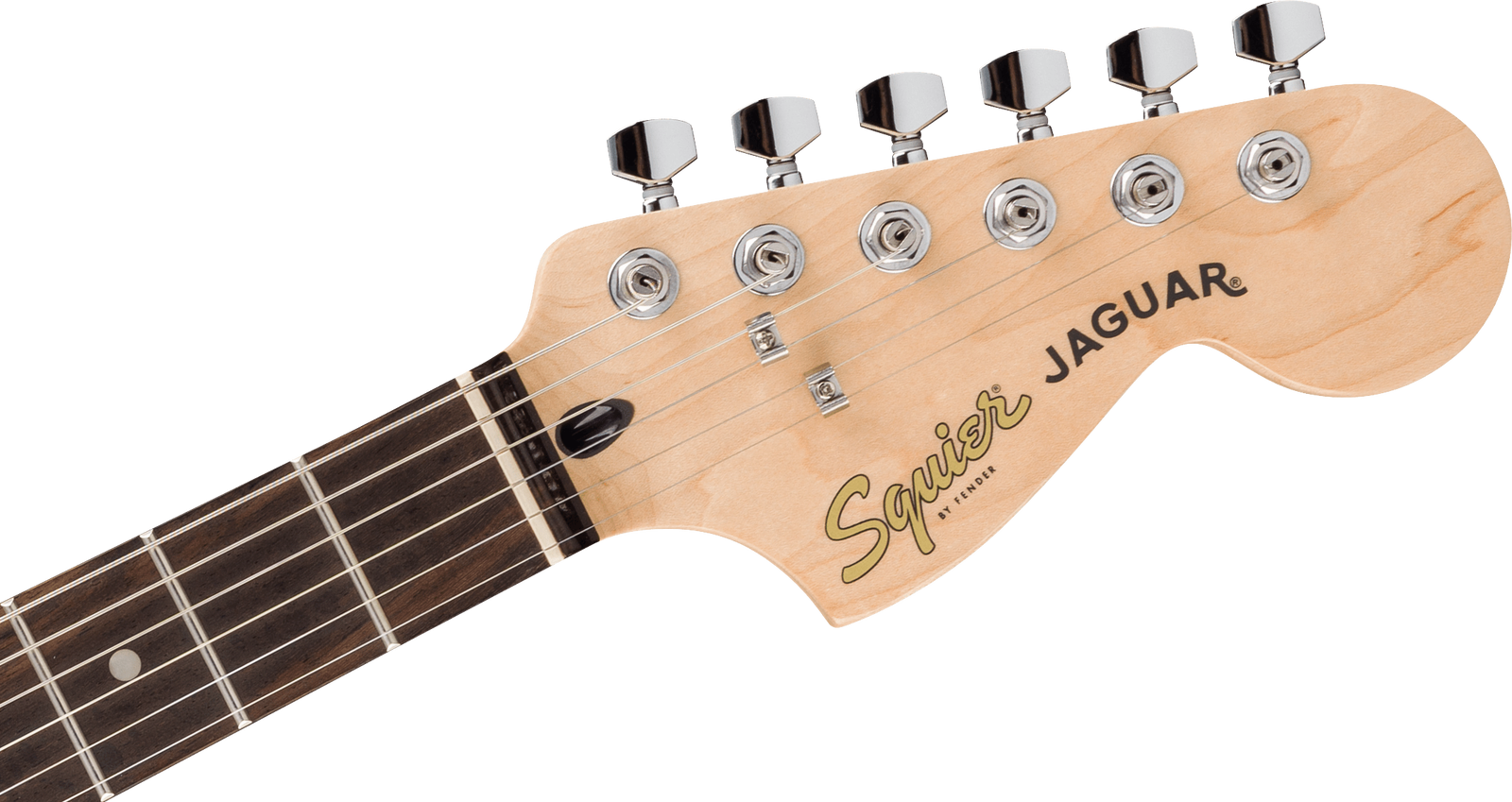 A superb gateway into the time-honored Fender family, the Squier Affinity Series Jaguar delivers legendary design and quintessential tone for today’s aspiring guitar hero. This model features several player-friendly refinements such as a thin and lightweight body, a slim and comfortable “C”-shaped neck with short 24“ scale length, a vintage-style tremolo and floating bridge for superior tremolo action and sealed die-cast tuning machines with split shafts for smooth, accurate tuning and easy restringing. Loaded with two Squier single-coil pickups with 3-way switching for genre-defying sonic variety, this model is ready to accompany any player at any stage.
