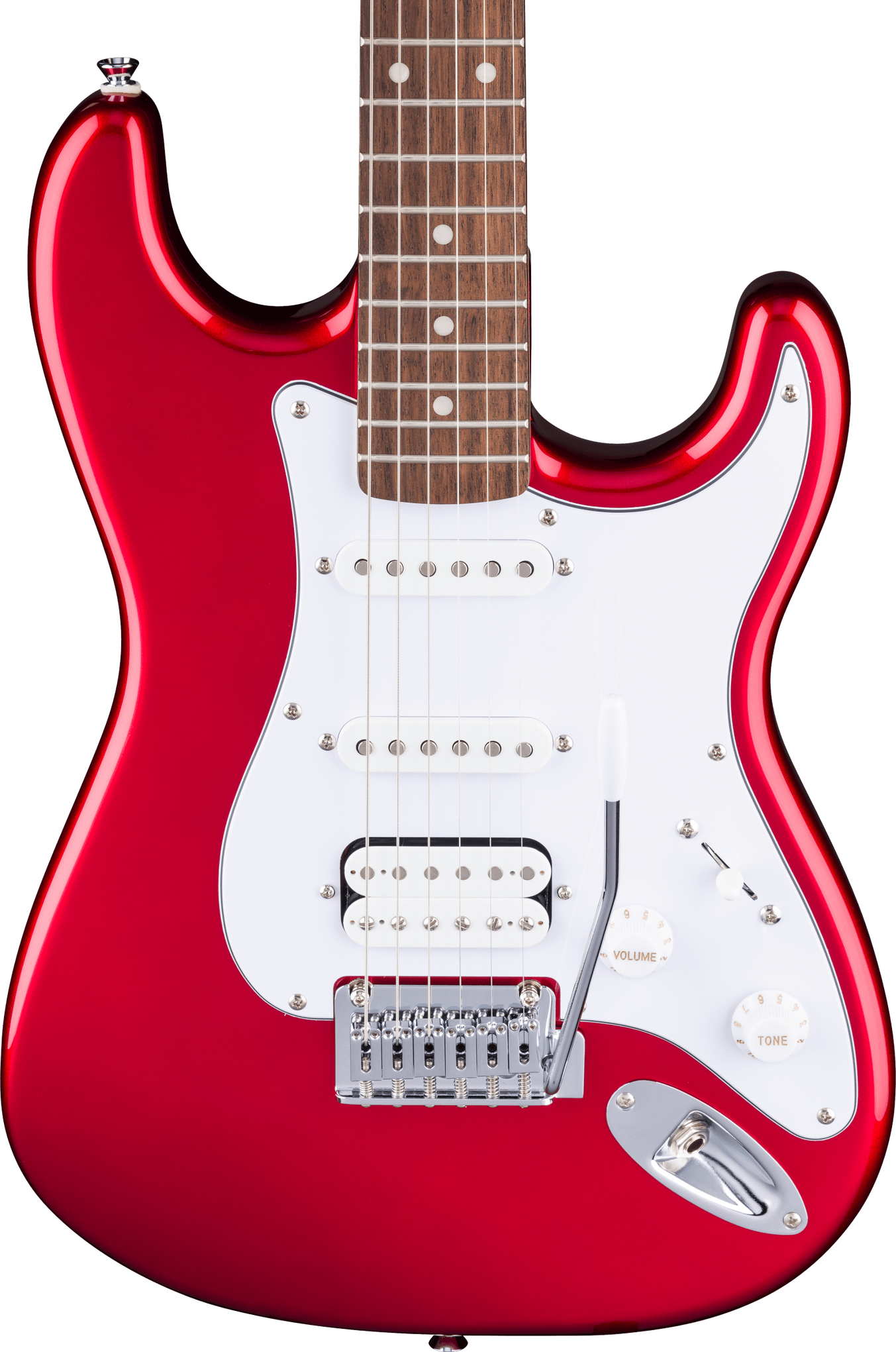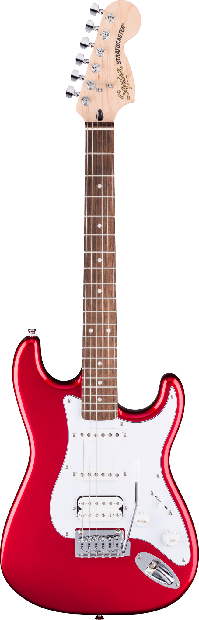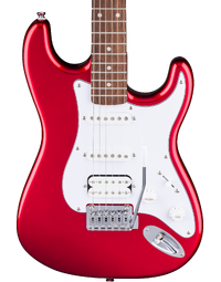 The Squier Affinity FSR Stratocaster Junior HSS in Candy Apple Red brings Fender tone and playability to a smaller, more comfortable size. Featuring a reduced poplar body and a 24" short-scale neck, it’s ideal for younger players or those who prefer a compact instrument. The slim “C”-shaped maple neck and Indian laurel fingerboard offer an easy playing feel, while the HSS pickup setup delivers everything from thick humbucker drive to crisp single-coil sparkle. A 2-point tremolo provides smooth, expressive pitch bends, and sealed die-cast tuners ensure reliable tuning stability. Stylish and practical, it’s a true Strat in a smaller package.