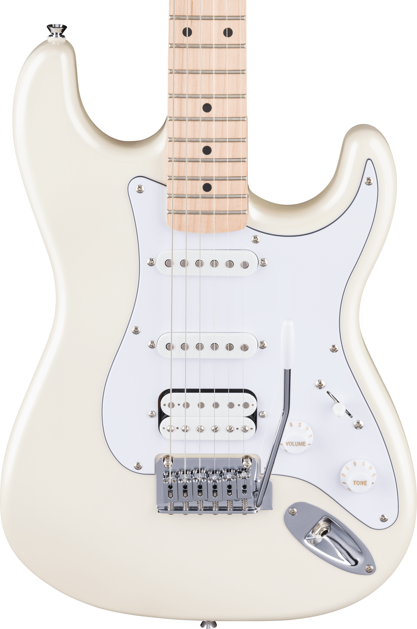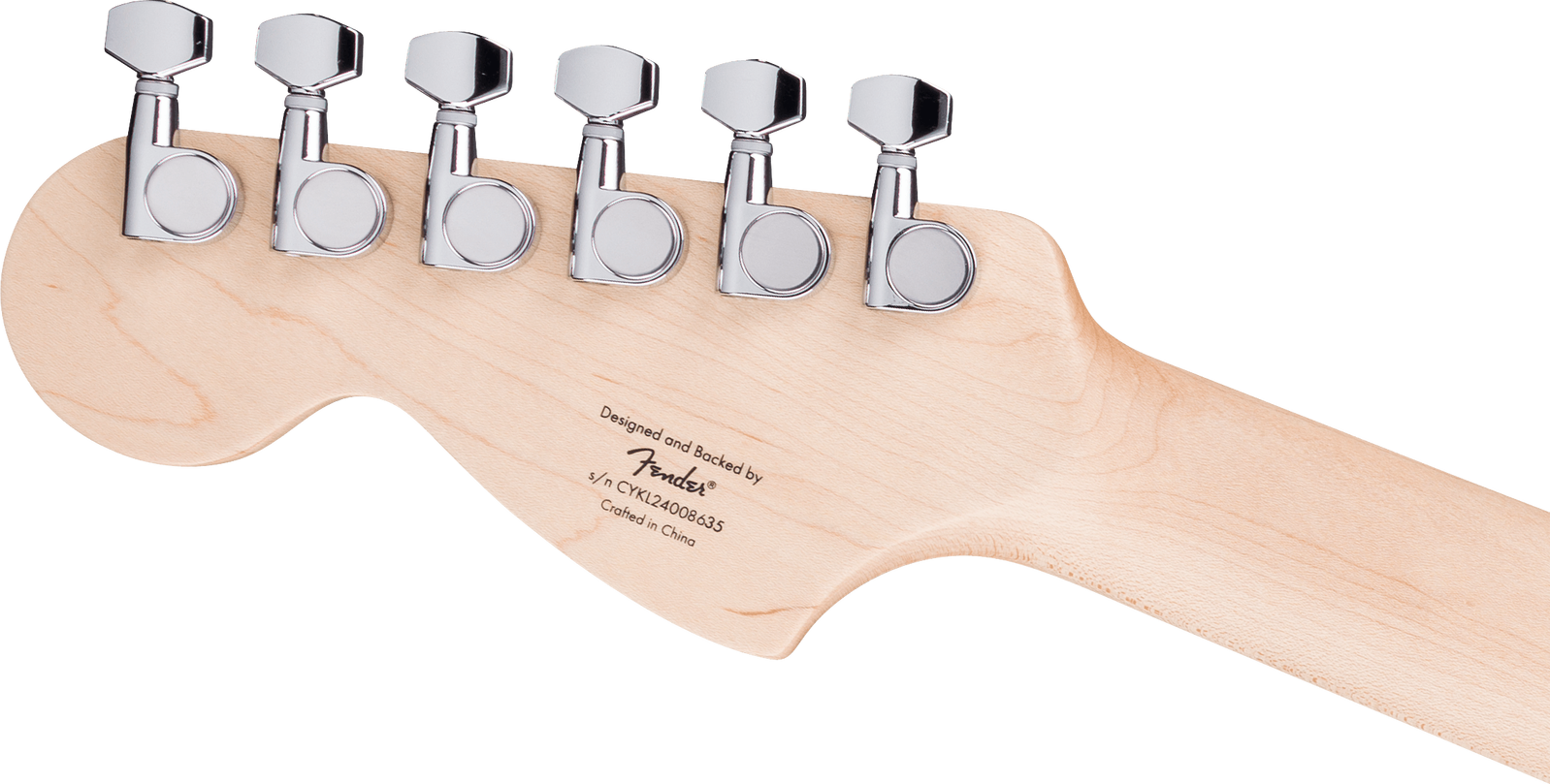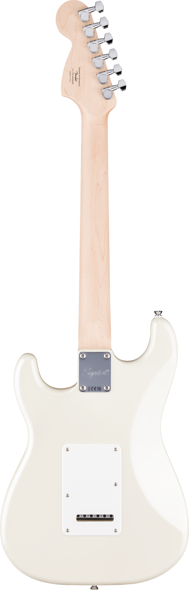 The Squier Affinity FSR Stratocaster Junior HSS in Pearl White delivers classic Strat tone and style in a reduced-size, short-scale package. Perfect for younger players or anyone seeking a more comfortable fit, it features a lightweight poplar body, a 24" scale length, and a slim “C”-shaped maple neck for effortless playability. The versatile HSS pickup configuration combines humbucker punch with single-coil clarity, while the 2-point tremolo system adds smooth pitch control. Finished in elegant Pearl White with a white pickguard, this short-scale Strat blends playability, performance, and striking looks in one sleek design.