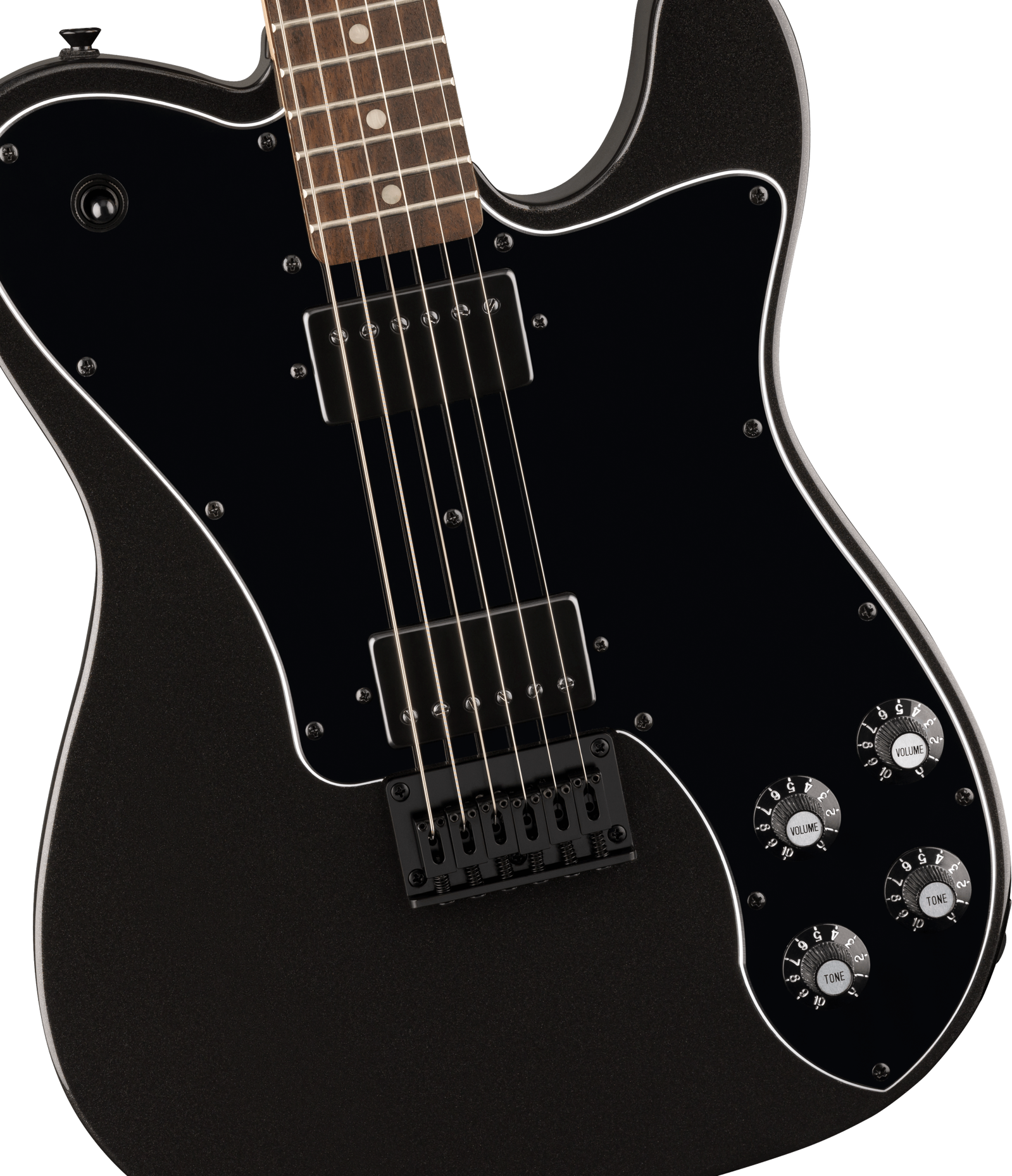 A superb gateway into the time-honored Fender family, the Squier Affinity Series Telecaster Deluxe delivers legendary design and quintessential tone for today's aspiring guitar hero. This Tele features several player-friendly refinements such as a thin and lightweight body, a slim and comfortable "C"-shaped neck profile, a string-through-body hardtail bridge for optimal body resonance and sealed die-cast tuning machines with split shafts for smooth, accurate tuning and easy restringing. Loaded with two Squier humbucking pickups with individual volume and tone controls for genre-defying sonic variety, this model is ready to accompany any player at any stage.