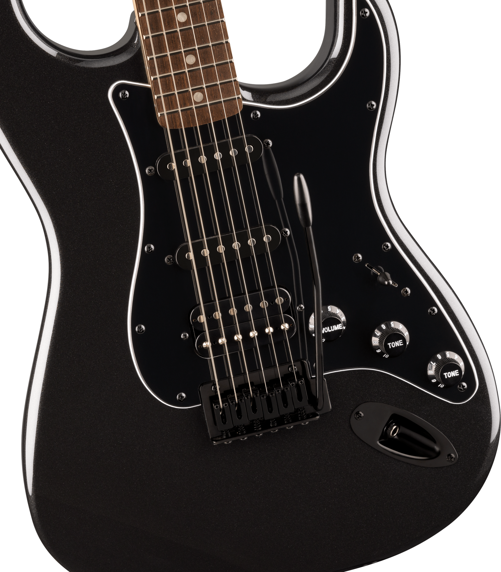 Squier Affinity FSR Stratocaster HSS LRL Black Pickguard Black Hardware Matching Headstock Metallic Black