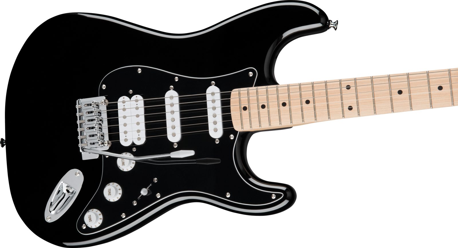 A superb gateway into the time-honored Fender family, the Squier Affinity Series Stratocaster HSS delivers legendary design and quintessential tone for today's aspiring guitar hero. This Strat features several player-friendly refinements such as a thin and lightweight body, a slim and comfortable "C"-shaped neck profile, a 2-point tremolo bridge for superior tremolo action and sealed die-cast tuning machines with split shafts for smooth, accurate tuning and easy restringing. Loaded with a Squier humbucking bridge pickup and single-coil neck and middle pickups for genre-defying sonic variety, this model is ready to accompany any player at any stage.