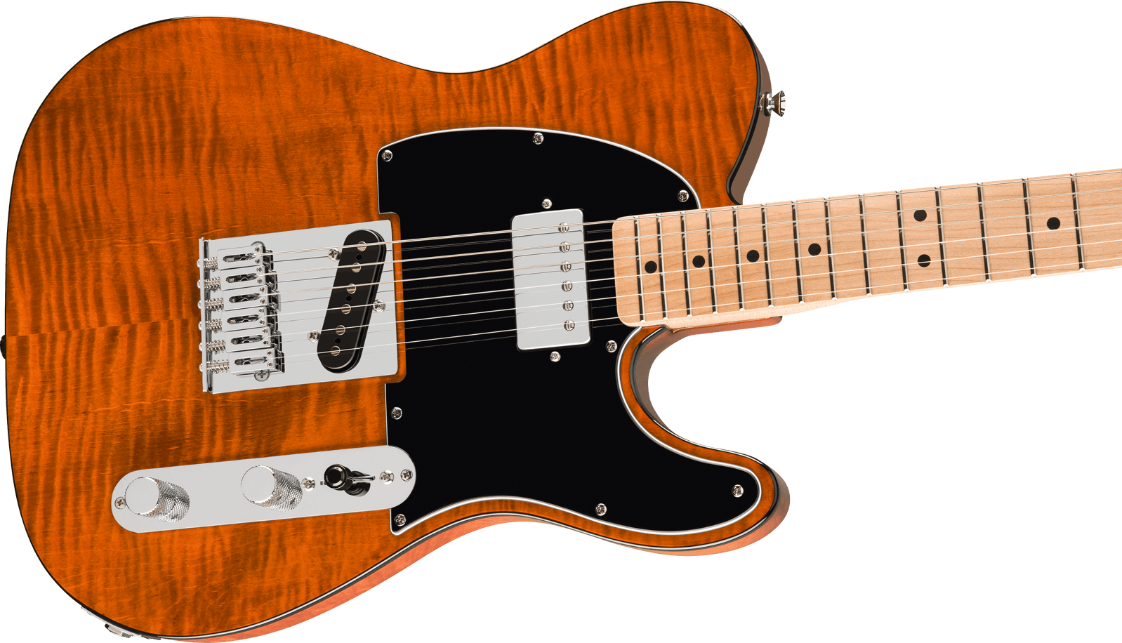 The Squier Affinity Series Telecaster FMT SH MN in Mocha is a superb gateway into the time-honoured Fender family, offering legendary design and quintessential tone for today’s aspiring guitar hero. This Telecaster features a thin and lightweight body with an eye-catching flame maple top (FMT), providing both visual appeal and comfortable playability. Its slim “C”-shaped neck profile ensures easy handling, while the string-through-body bridge enhances body resonance and stability.